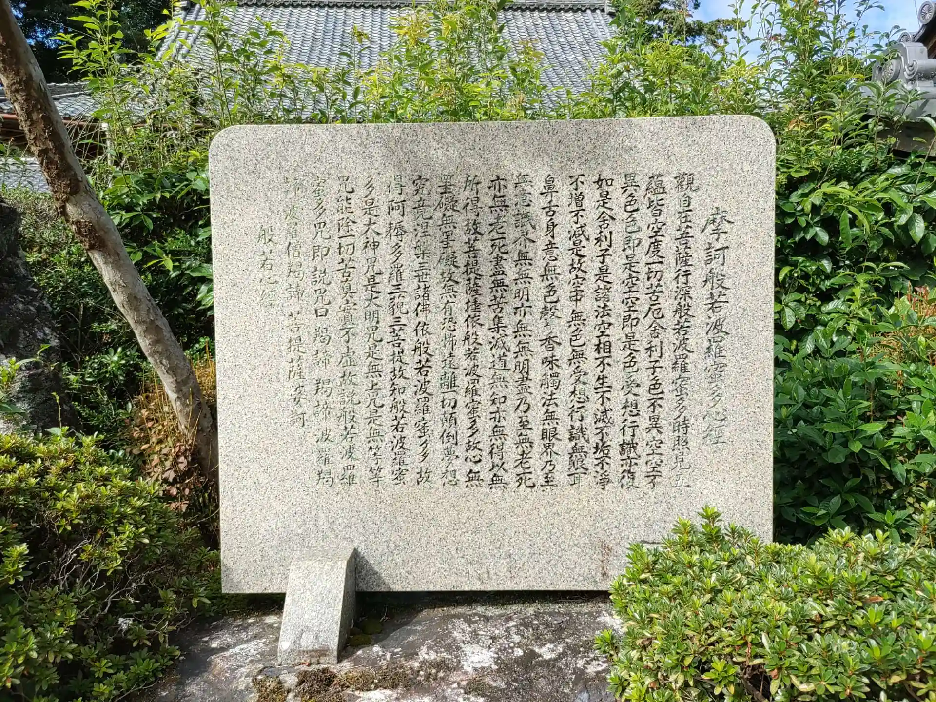 般若心経の石碑、山門に入る前にあります
