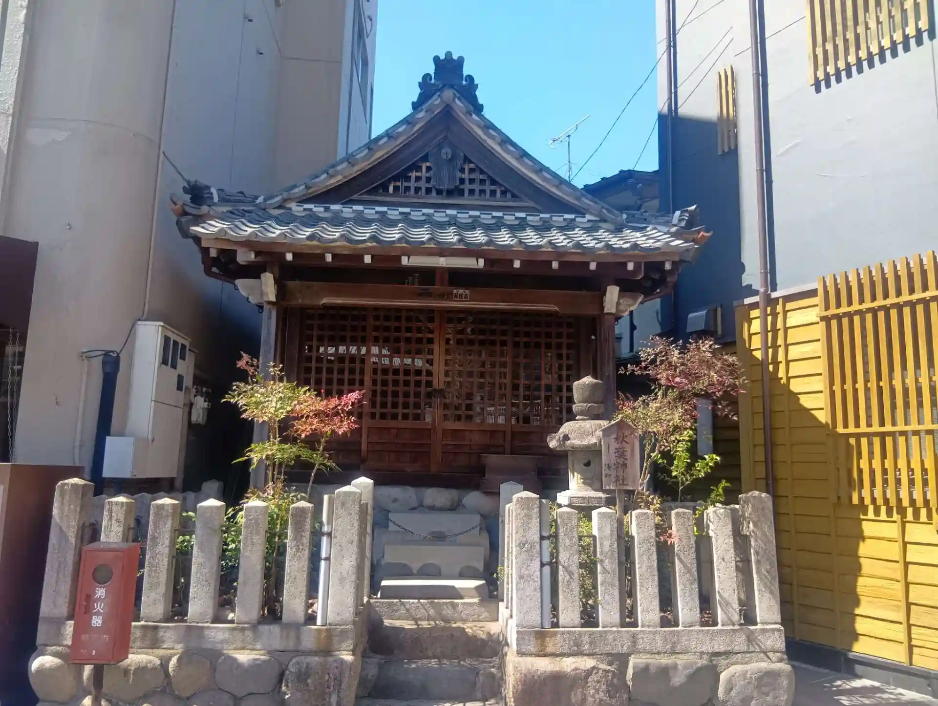 岐阜県岐阜市湊町、古い町並み川原町の一角、長良川の南側、鵜飼い船乗り場の近くに鎮座する「秋葉神社」を初参拝させていただきました。散策中に偶然見つけました。入口にチェーンがあり、近づくことができませんでしたが、小さいながらも立派なお社でした。専用の駐車場はありません。