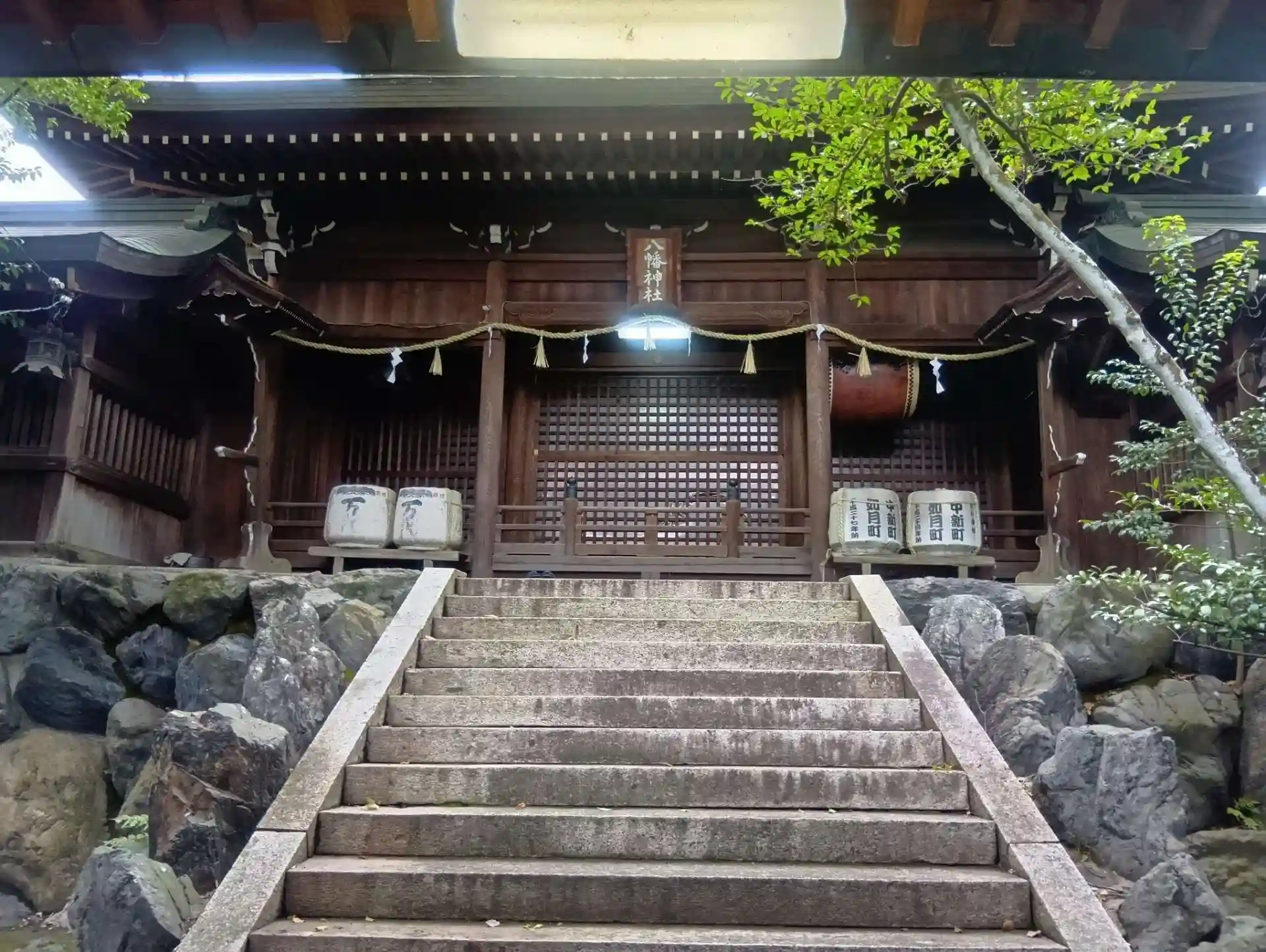 岐阜県羽島郡笠松町八幡、名鉄笠松駅より南へ徒歩10分ほどに鎮座する「八幡神社」を初参拝させていただきました。応神天皇をお祀りする神社です、細い路地に囲まれた広い境内には「柿本神社」「富森稲荷神社」「秋葉神社」ほか、いくつものお社がありました。鳥居の正面右手に御神木である、大きな楠木がありました。八幡神社の拝殿と御神殿の前に立つと、凛とした静けさがあり、心身共に浄化されるようで、とても心地良く感じました。境内に駐車場あります。また参拝させていただきます。