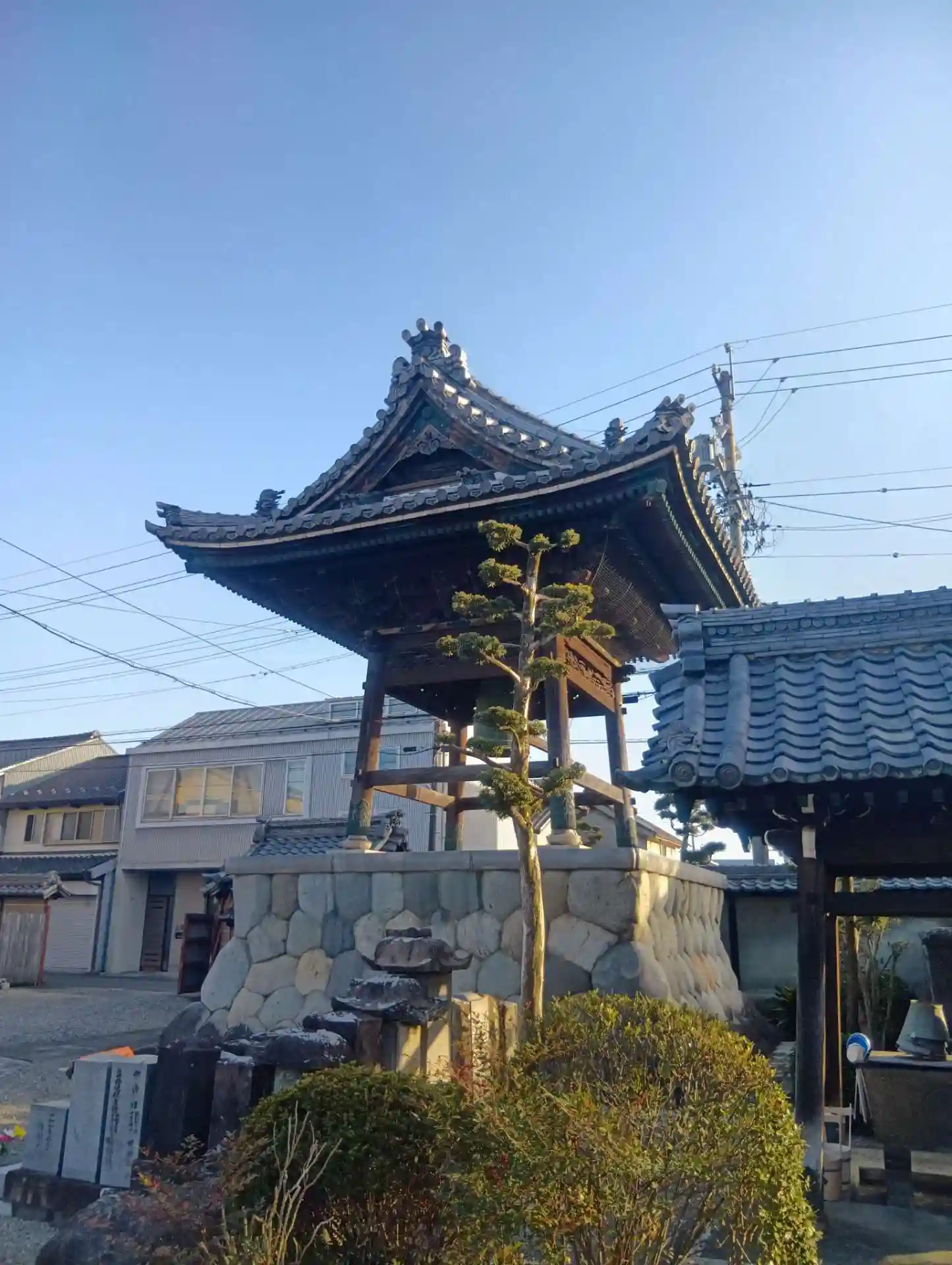 岐阜県羽島郡笠松町上本町、参道に「愛宕神社」が鎮座する「常行山 法傳寺」を初参拝させていただきました。阿弥陀如来を本尊とする、美濃郡代に縁のある浄土真宗大谷派の寺院です。1528年創建された歴史ある寺院です。手水舎に井戸のポンプがありました。本堂の前にギャラリーの案内があり、「ご自由にお入りください」とありましたが、本堂の扉が閉まっていたので入って良いものか分からず、入りませんでした。どんな展示があったのか、とても気になります。立派な鐘楼が印象に残りました。参道の入口、道路沿いに2台分ほどの駐車可能なスペースがあります。境内にご住職さまとご家族のものと思われる車が数台とまっていました。