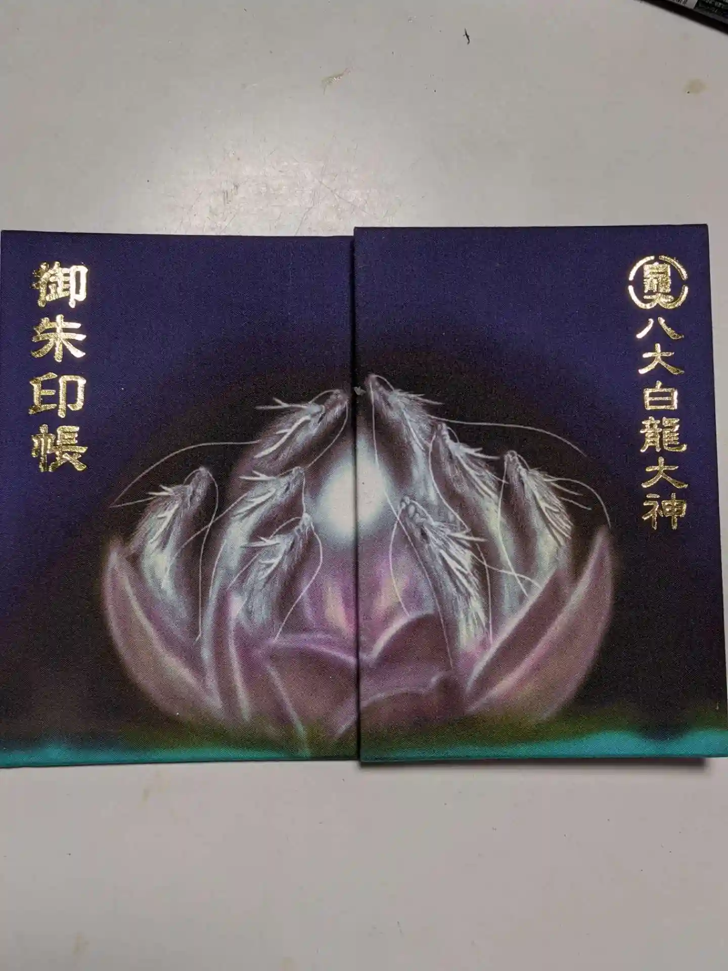 御朱印帳がカッコよかったので頂きました。福岡の志賀海神社の御朱印帳を手掛けられた気龍画師の方がデザインされたそうです。