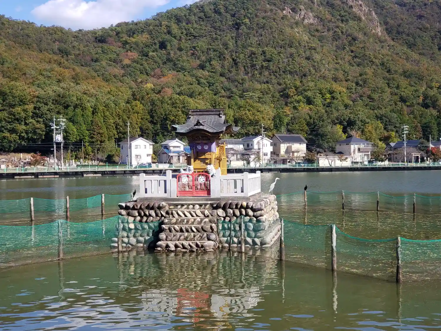 苧ヶ瀬池に面しています。御朱印をいただきました。鯉が集まっていました。