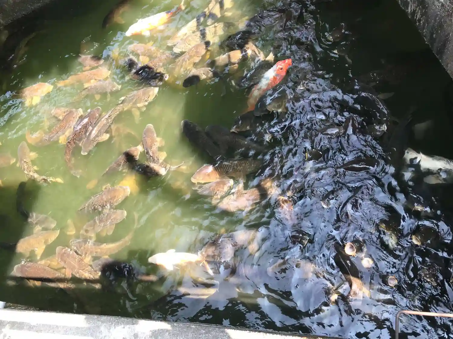 池には沢山の鯉が居て子供達が餌をあげていて楽しそうでした。