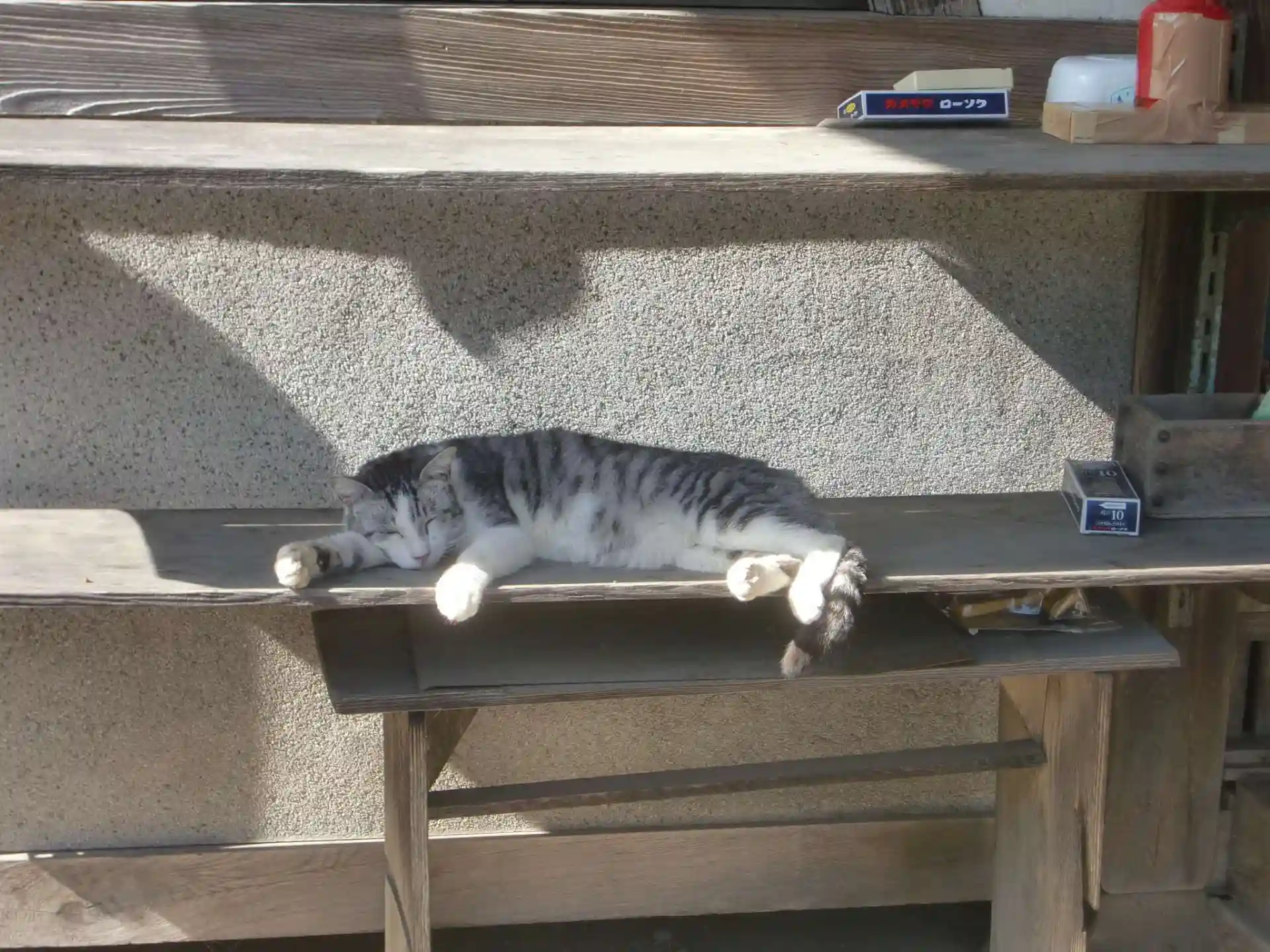 八大龍王総本殿は、湖畔にありますが、こちらの本殿は、少し陸地です。猫さんが無人の神社を見守っていました。道の反対側の瓢箪の棚の中にお地蔵さんがいました。