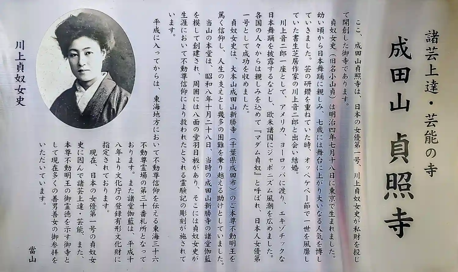 | 開山・開基 | 川上貞奴 |