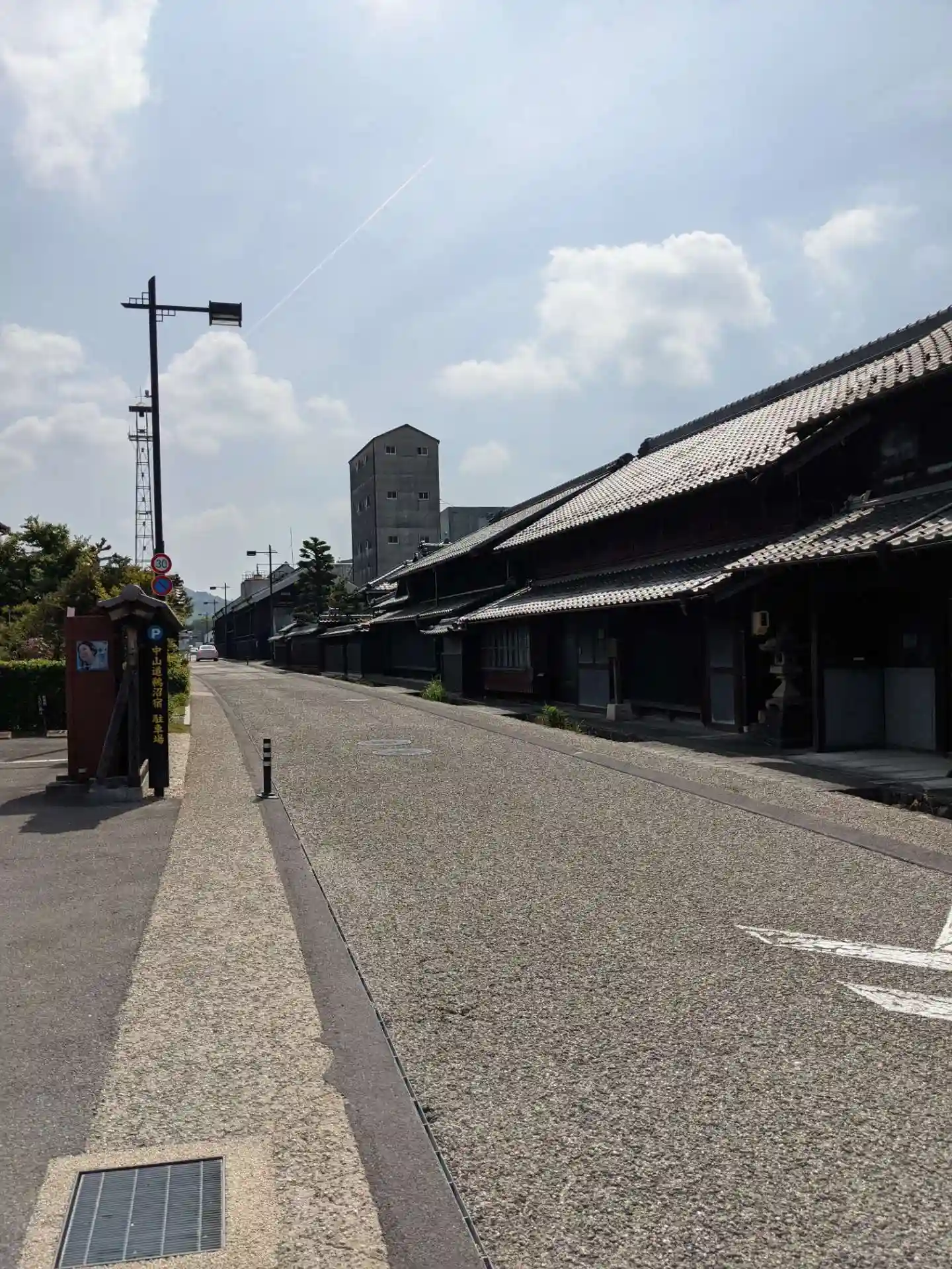 旧中山道鵜沼宿の通り沿いに共同駐車場があります。風情漂う昔ながらの建物が続きます。