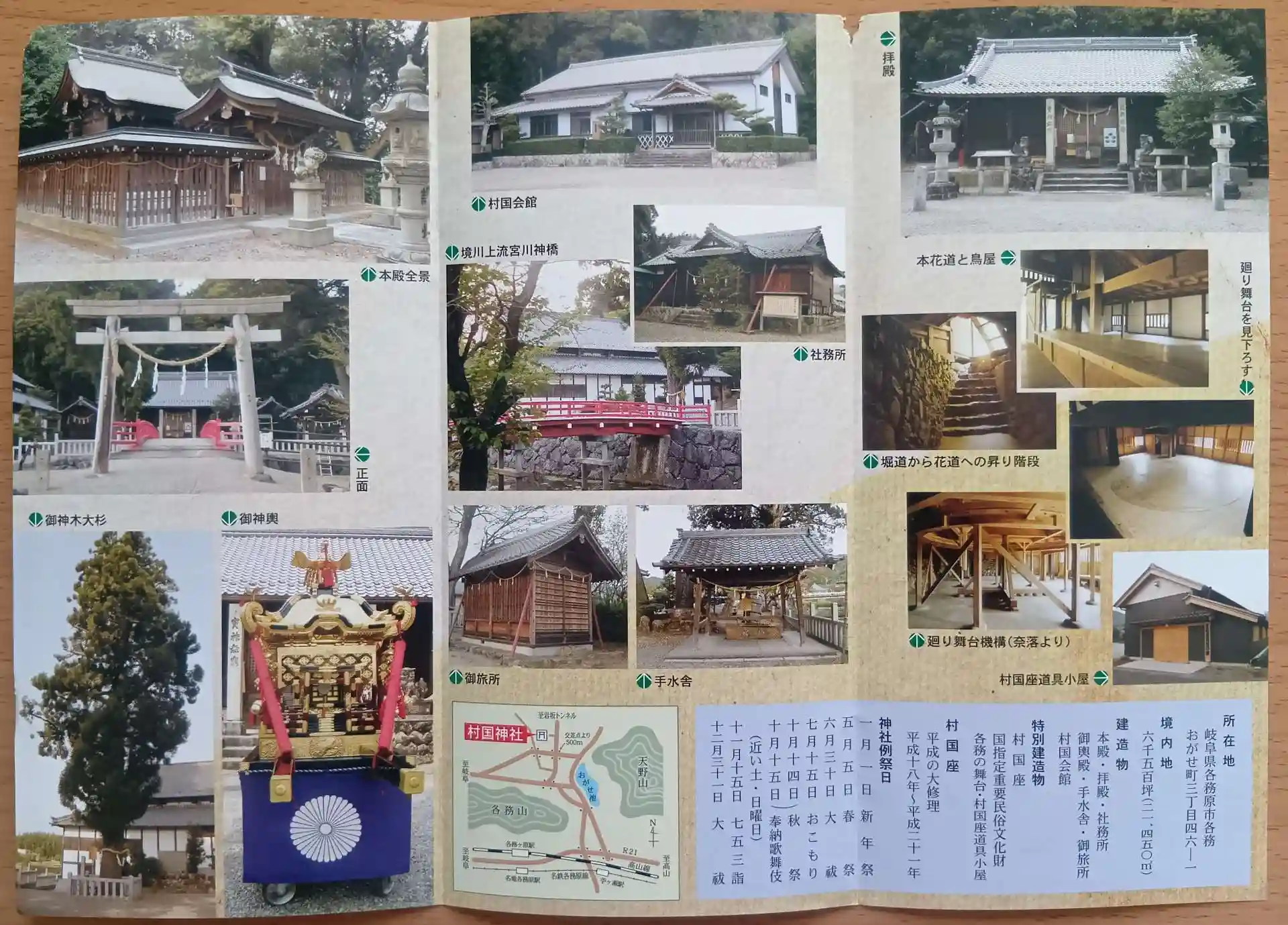 岐阜県各務原市各務おがせ町、苧ヶ瀬池(おがせいけ)から北西へ車で10分ほどにある「村國神社」を初参拝させていただきました。天之火明命(あめのほあかりのみこと)・石凝姥命(いしこりどめのみこと)をお祀りする神社です。木造の神橋を渡り境内に入ります。左手に大きな御神木大杉があります。拝殿に御朱印の案内書きがありました。村國神社は宮司不在のため、置書きの御朱印(5種類・各500円)を車で南へ10分ほどにある「アイエル足立」(眼鏡店)にて拝受可能とのこと。お参りを終えた後、アイエル足立へ向かい、置書きの午年限定御朱印(500円)をいただきました。