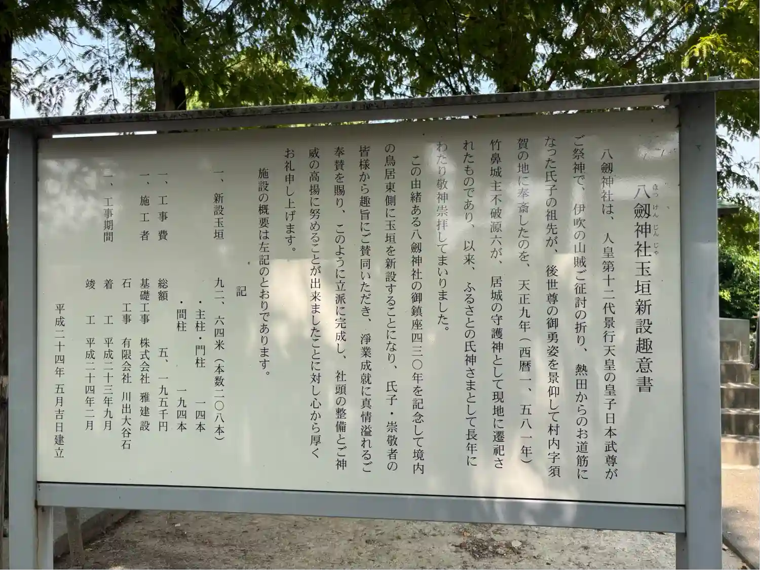 日本武尊が伊吹山の賊を征討した際、その雄姿を景仰した里人が後世になって尊を奉斎したものです。