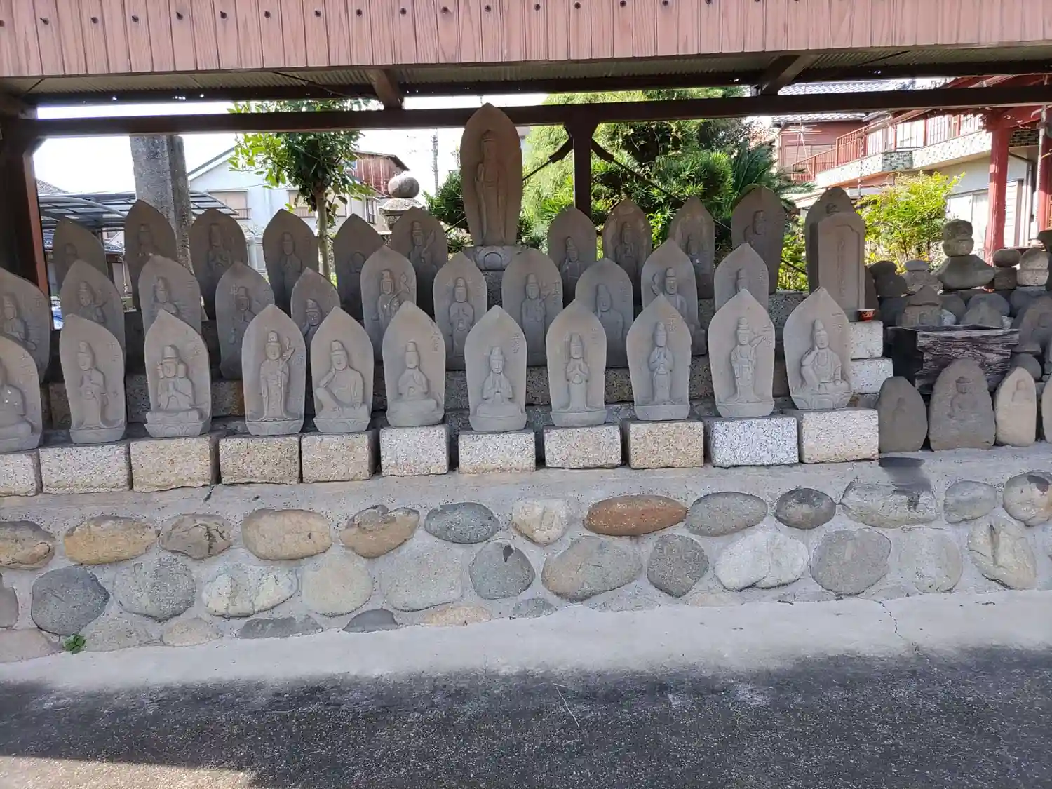 境内に入って左側にある、きれいに並んだ石造群。