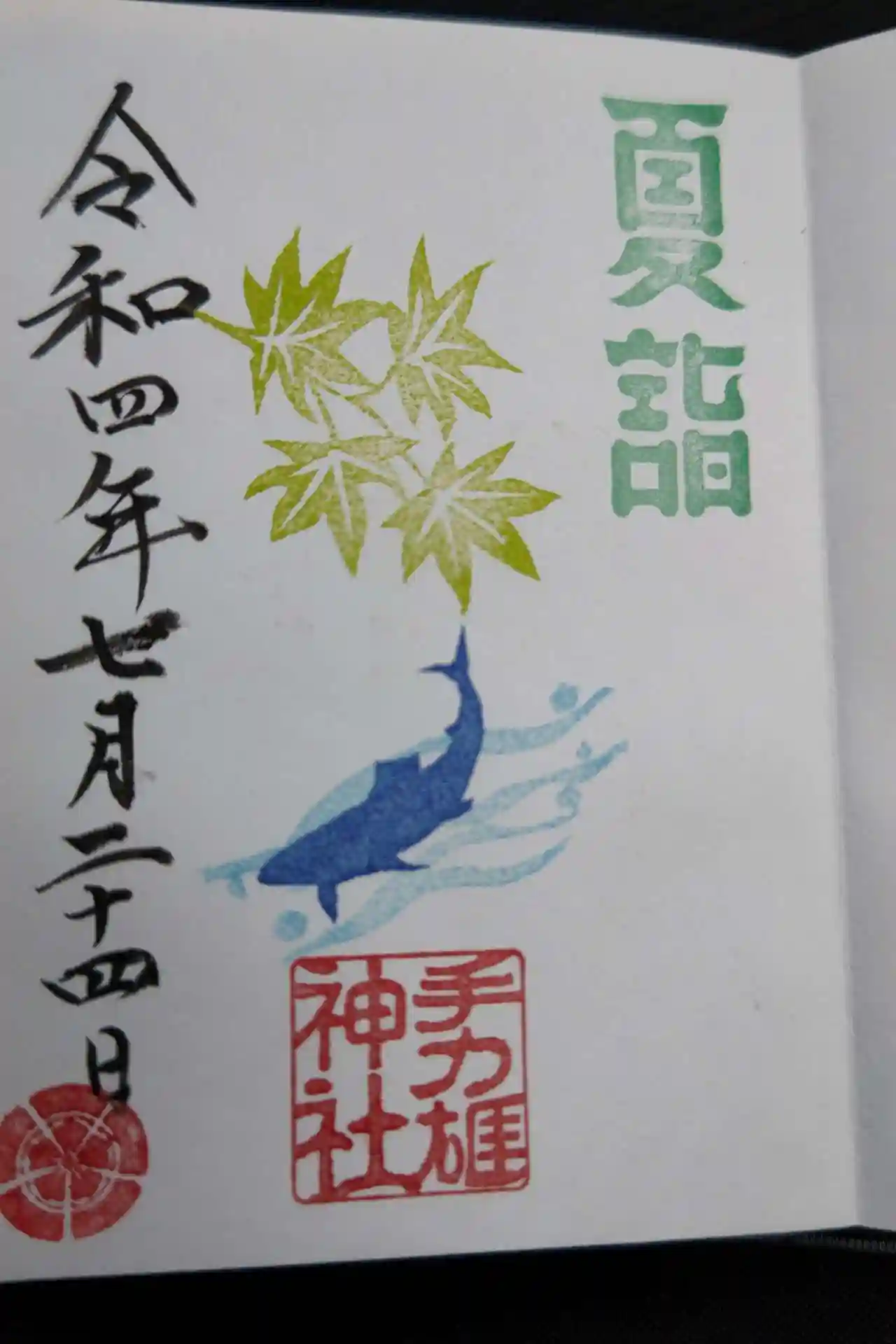暑さに負けず参拝しました。少しでも涼しくなればと思い、御朱印は夏詣の鮎にしました。