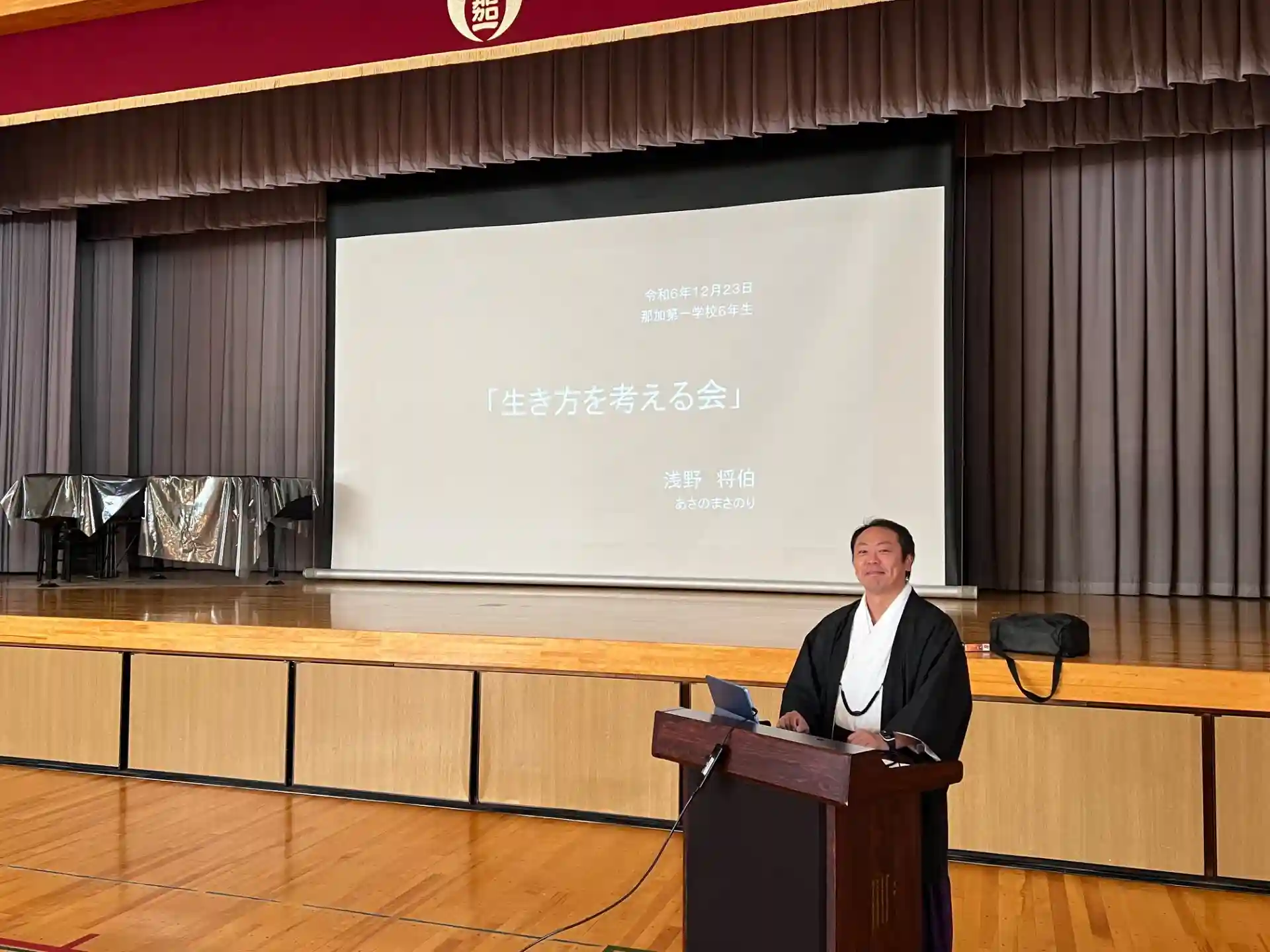今日は地元小学校にて「生き方を考える会」の講師でお話しいたしました。
