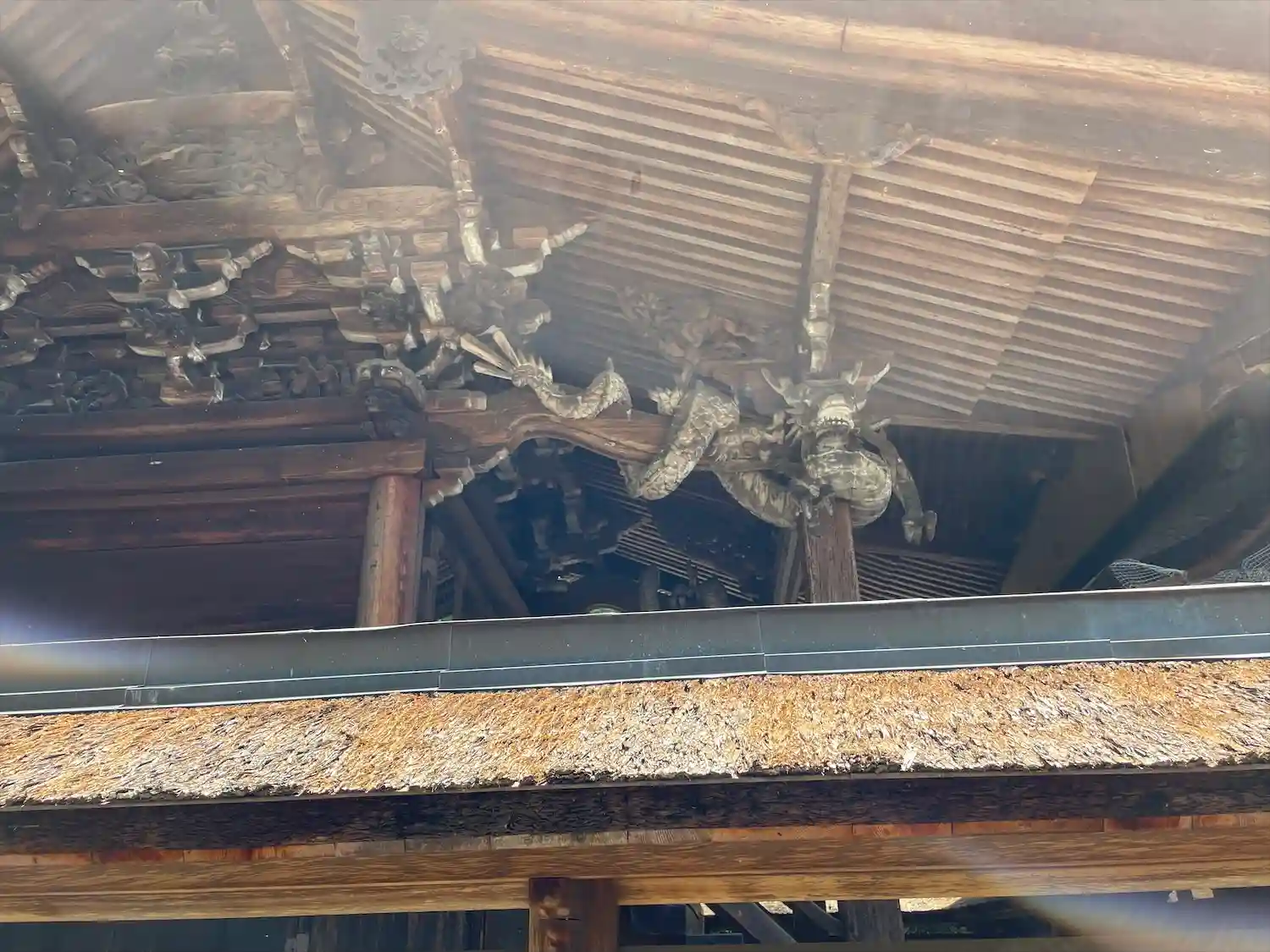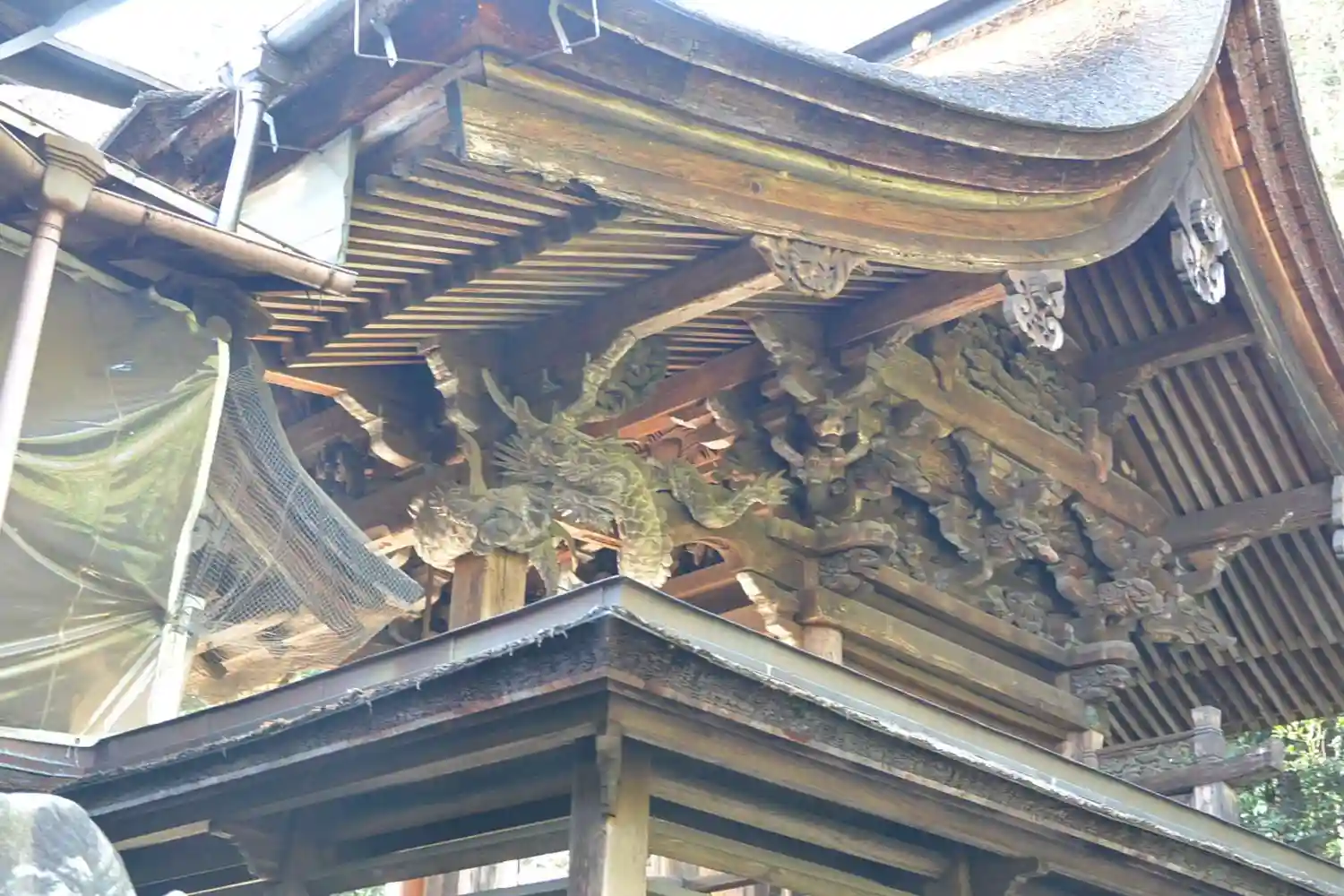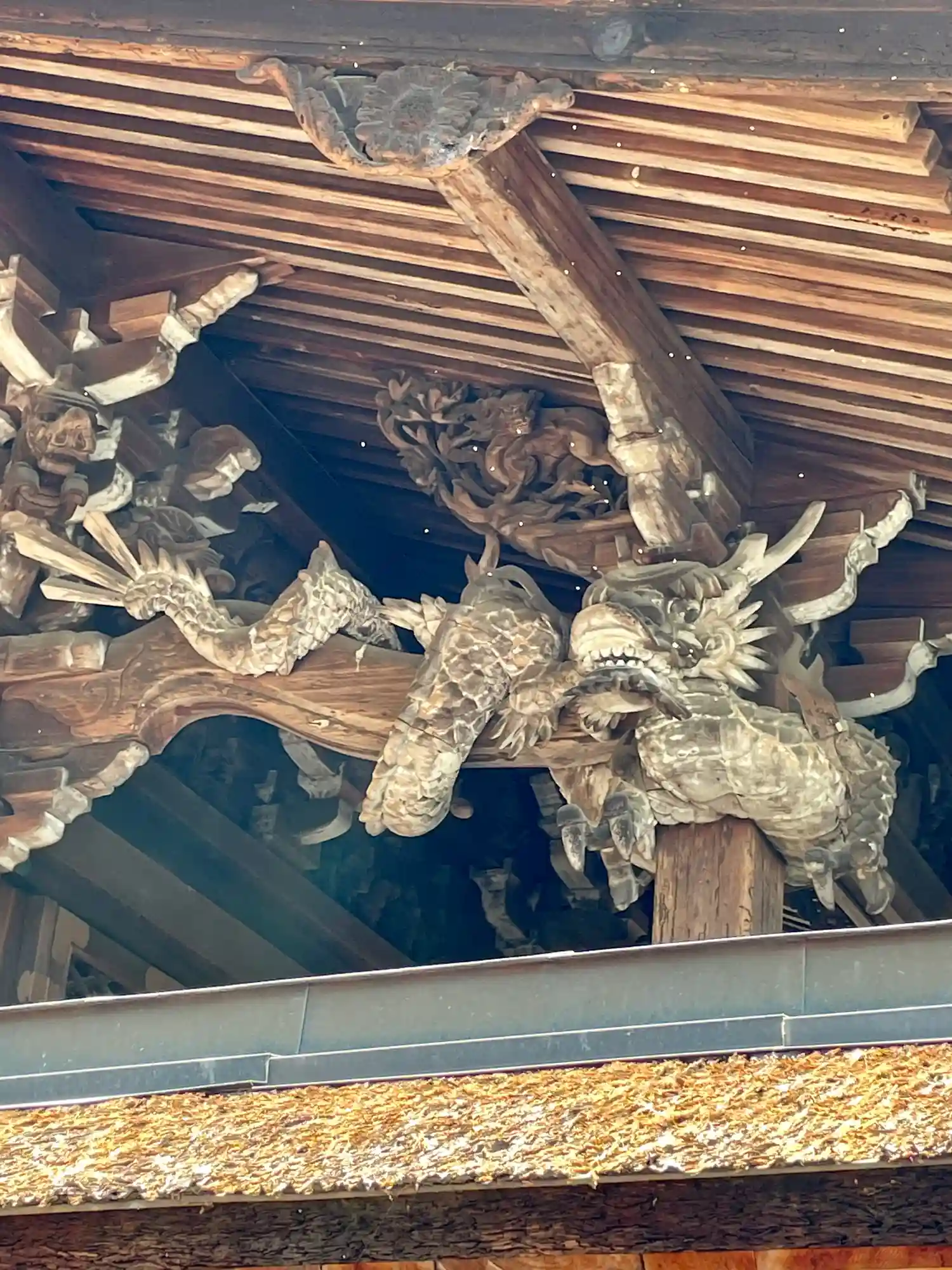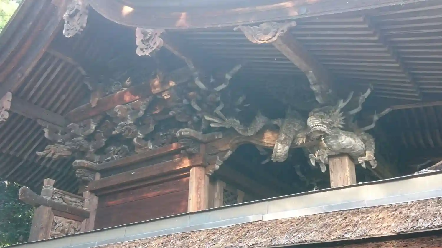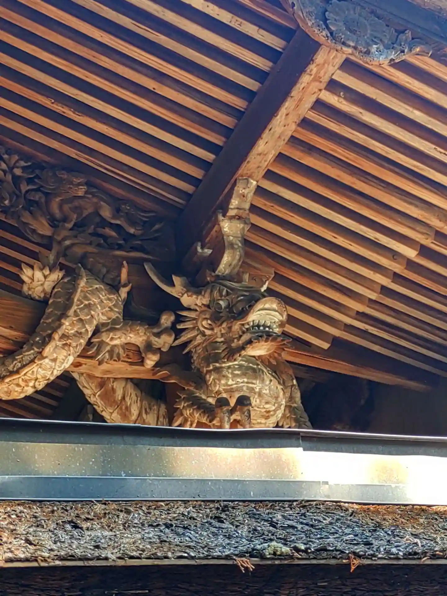 本殿軒下の寄木造りの龍。各務原の重文です。