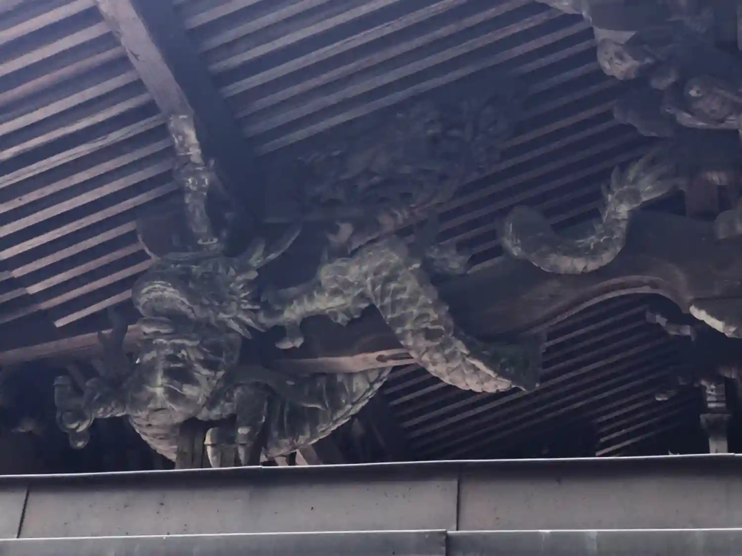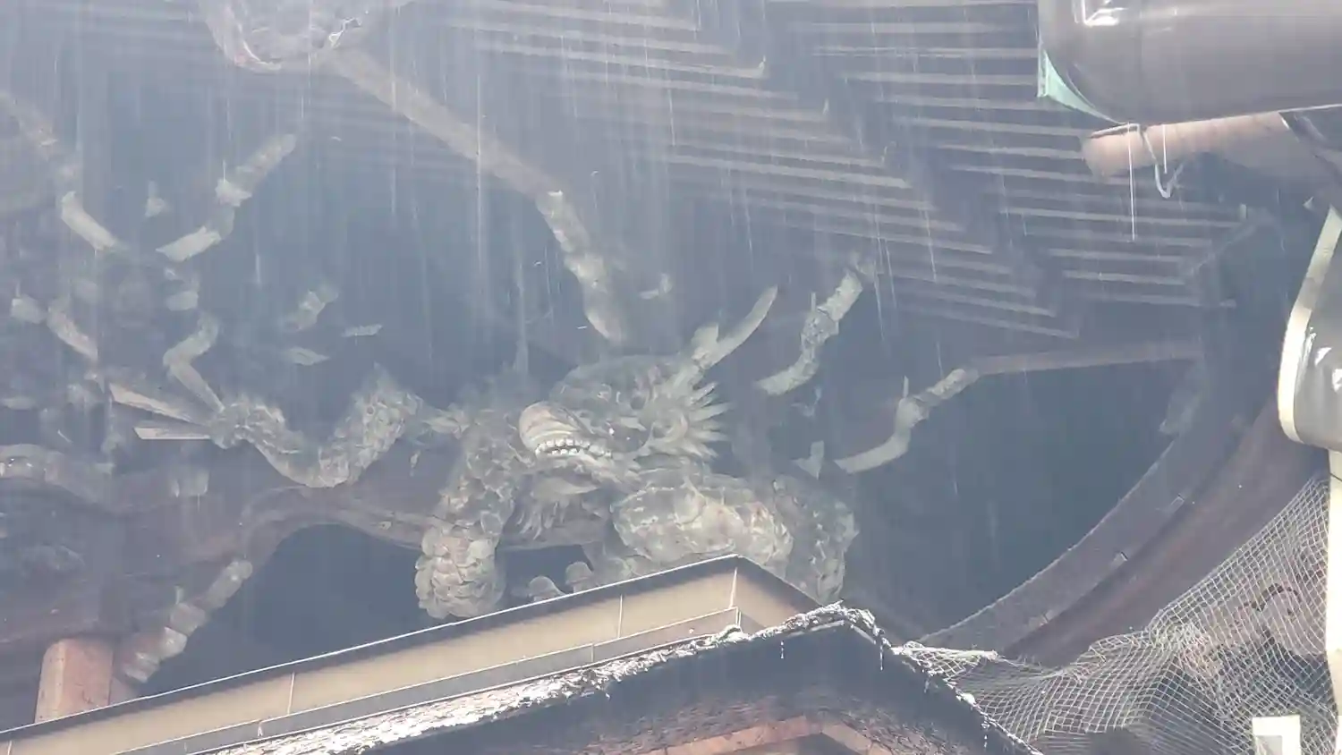 と、みんな口々に言い合っていた。その中の一人が、お拝殿の上の木彫りの龍を見上げ、