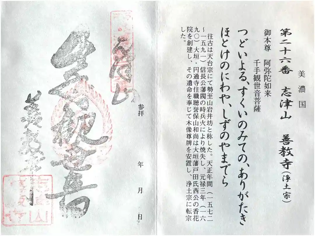 西美濃西国三十三観音霊場 26番札所 志津山 善教寺にお参りしました。