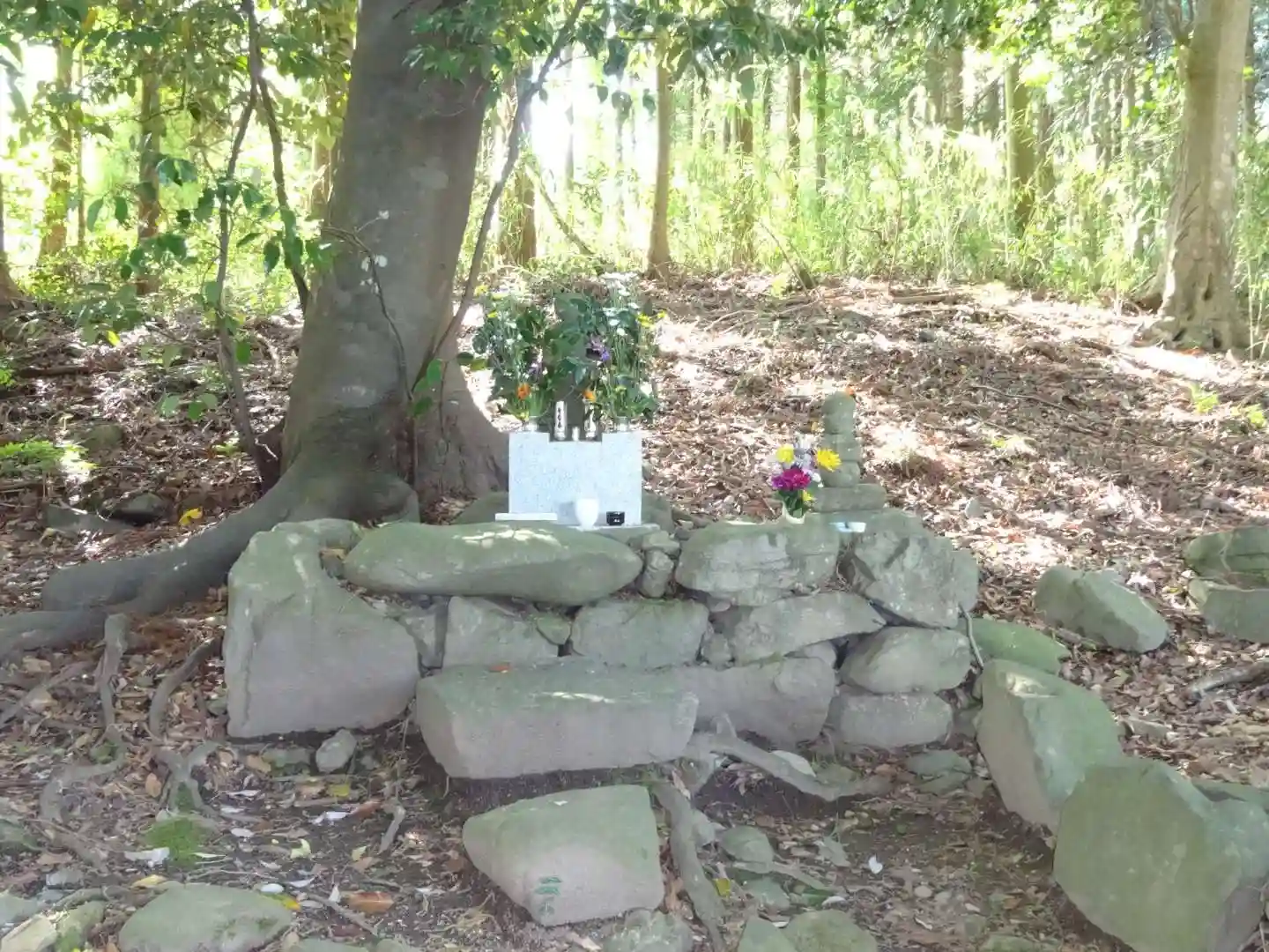 カンリン藪といわれる林の中にある島津塚(島津豊久公の墓)
