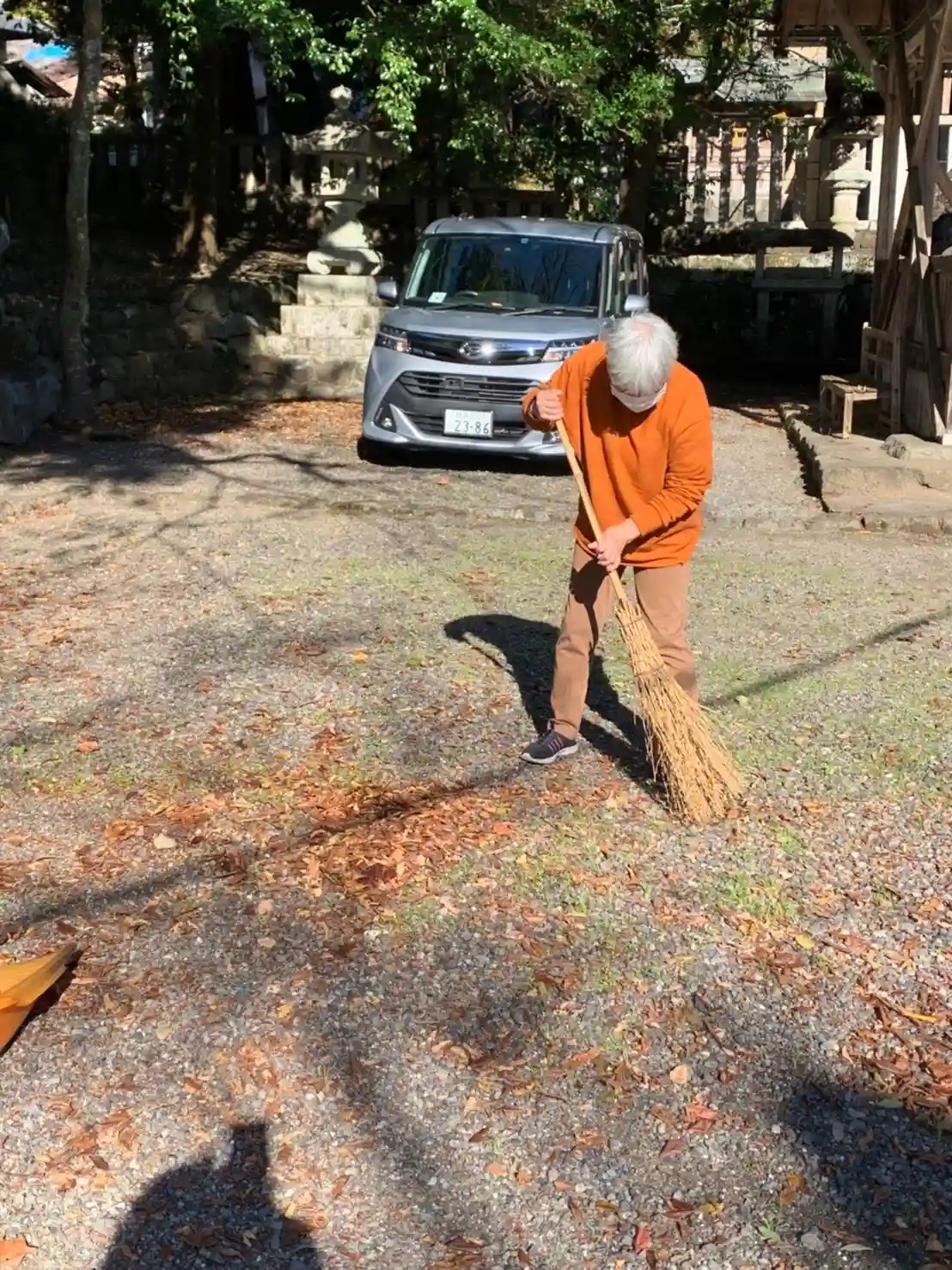 皆様と一緒に境内の落ち葉🍂を綺麗に