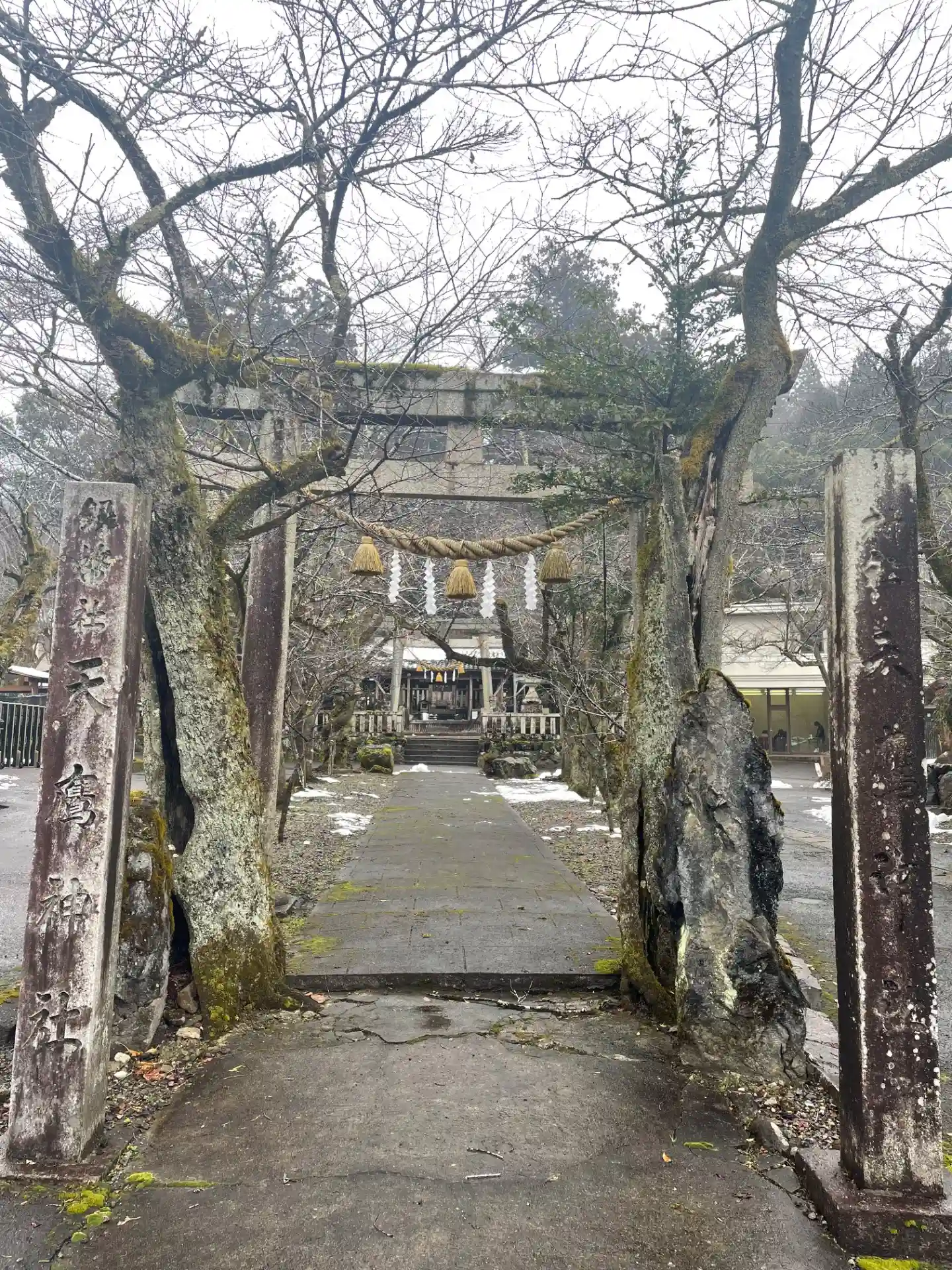 天鷹神社⛩️では雪が所々残っており、