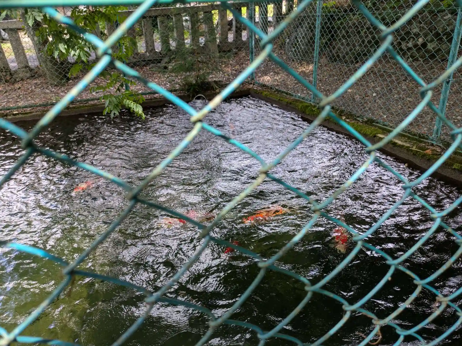 池の中には 錦鯉が・・フェンスでガードされています