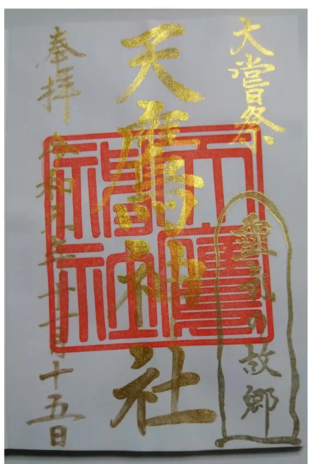 10月22日 即位の礼特別記念御朱印 金文字で授与される。