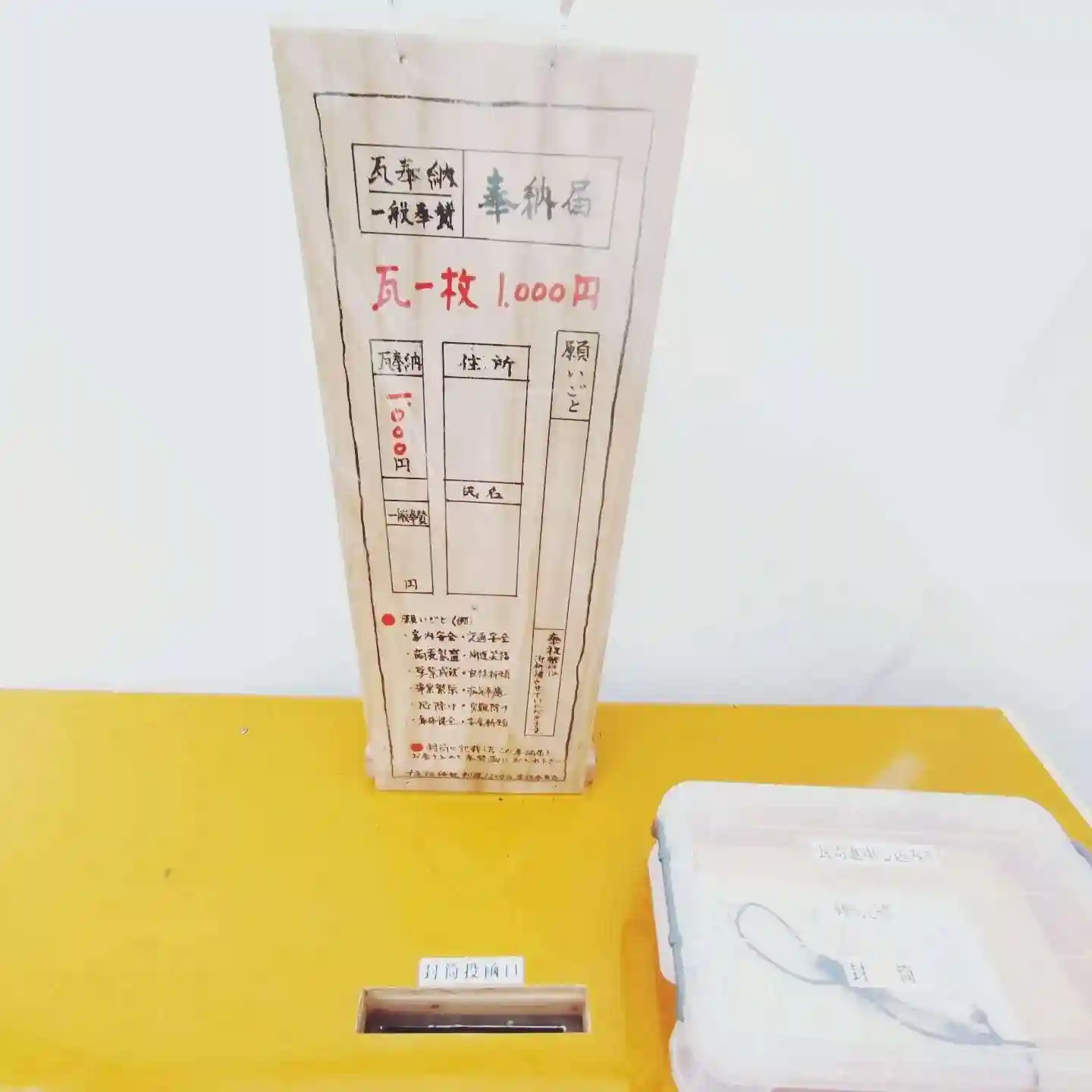 こちらの瓦にお名前、住所、願い事を記載いただきます