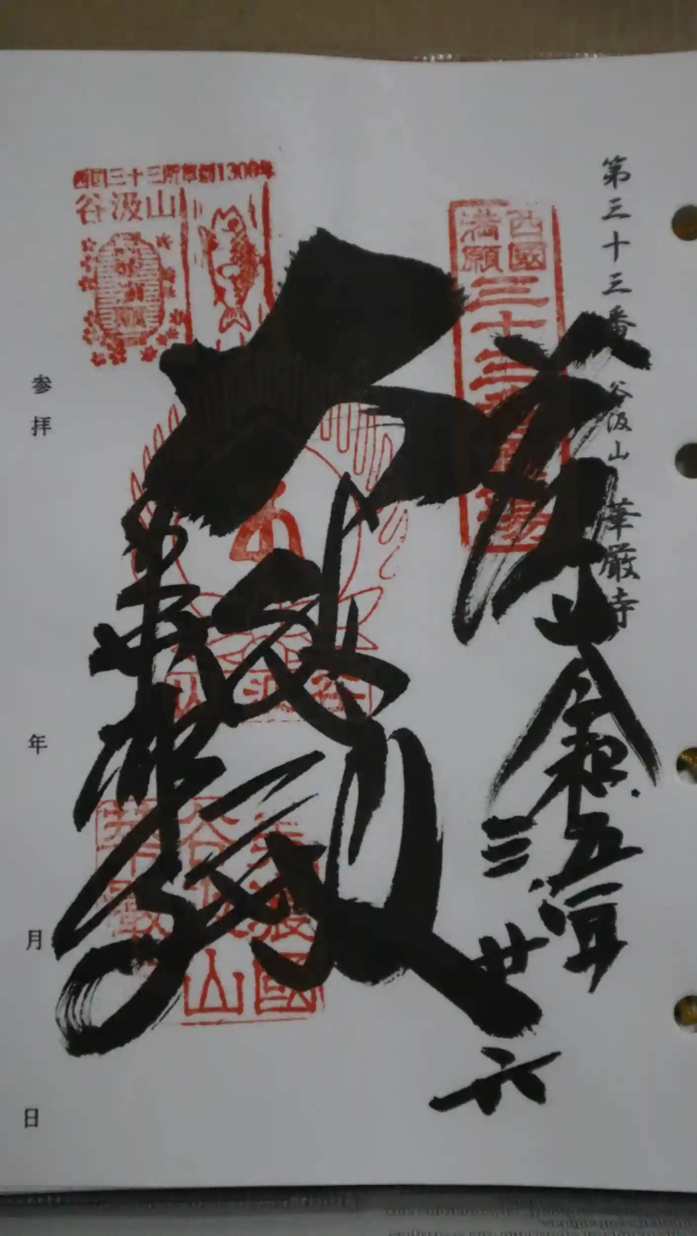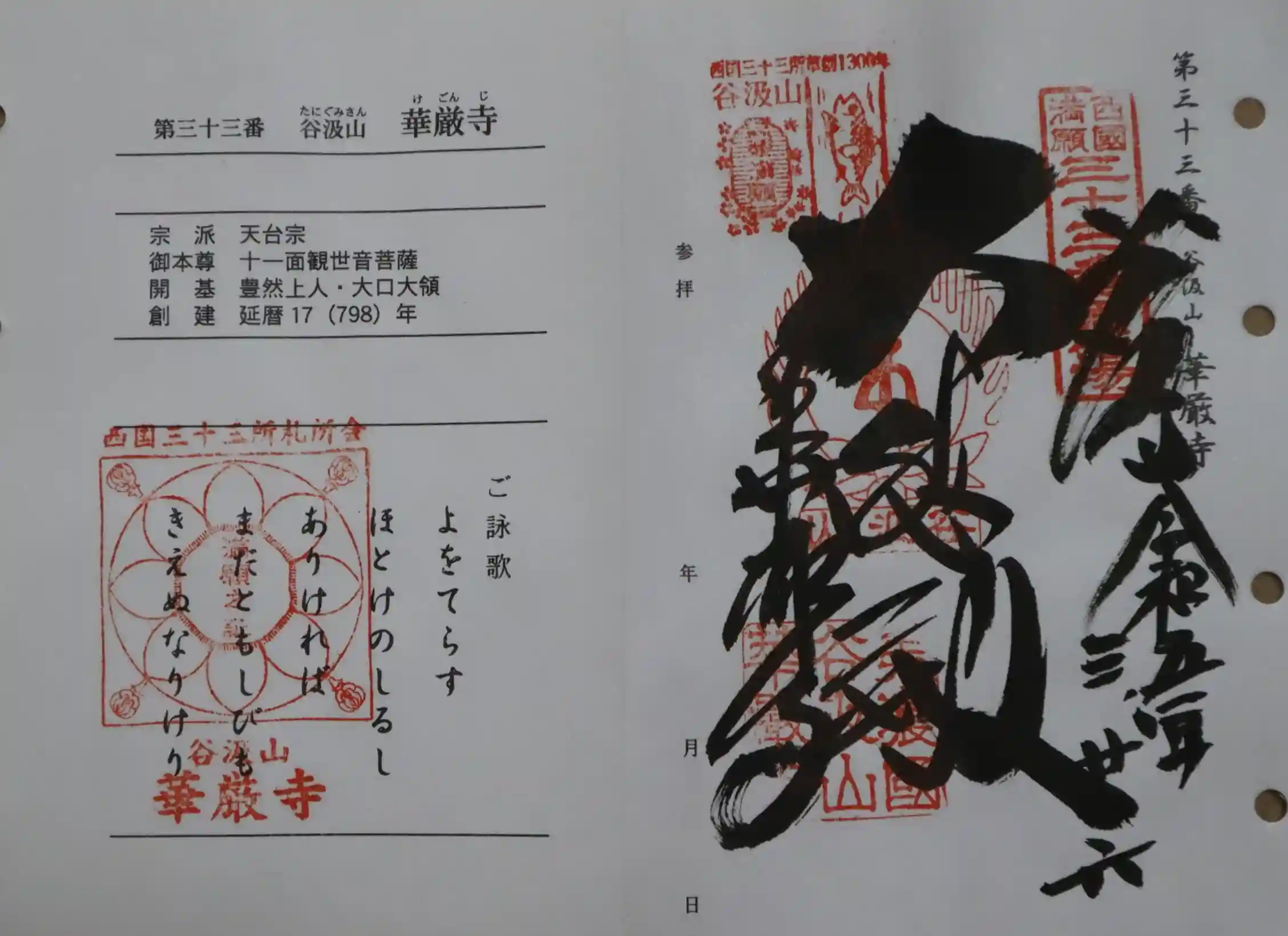 西国三十三所観音霊場納経帳のページ