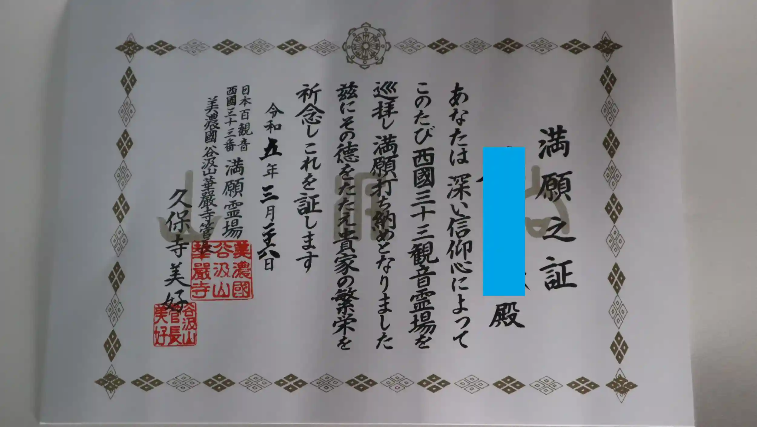 西国三十三所観音霊場の満願之証
