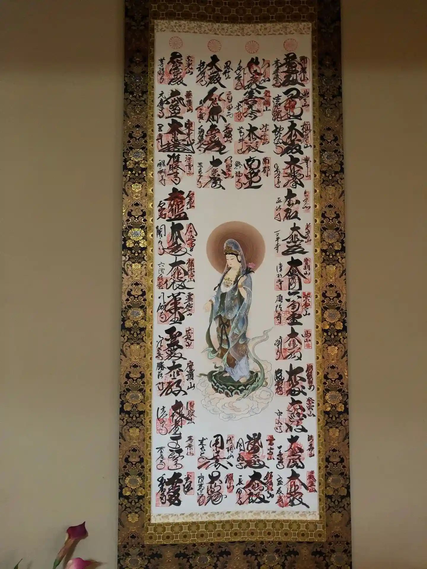 西国三十三観音霊場2回目の満願です。御軸を持って歩くのは大変でしたが、出来上がりはこんなに素敵になりました👍高野山と善光寺が必要なのは知りませんでした。