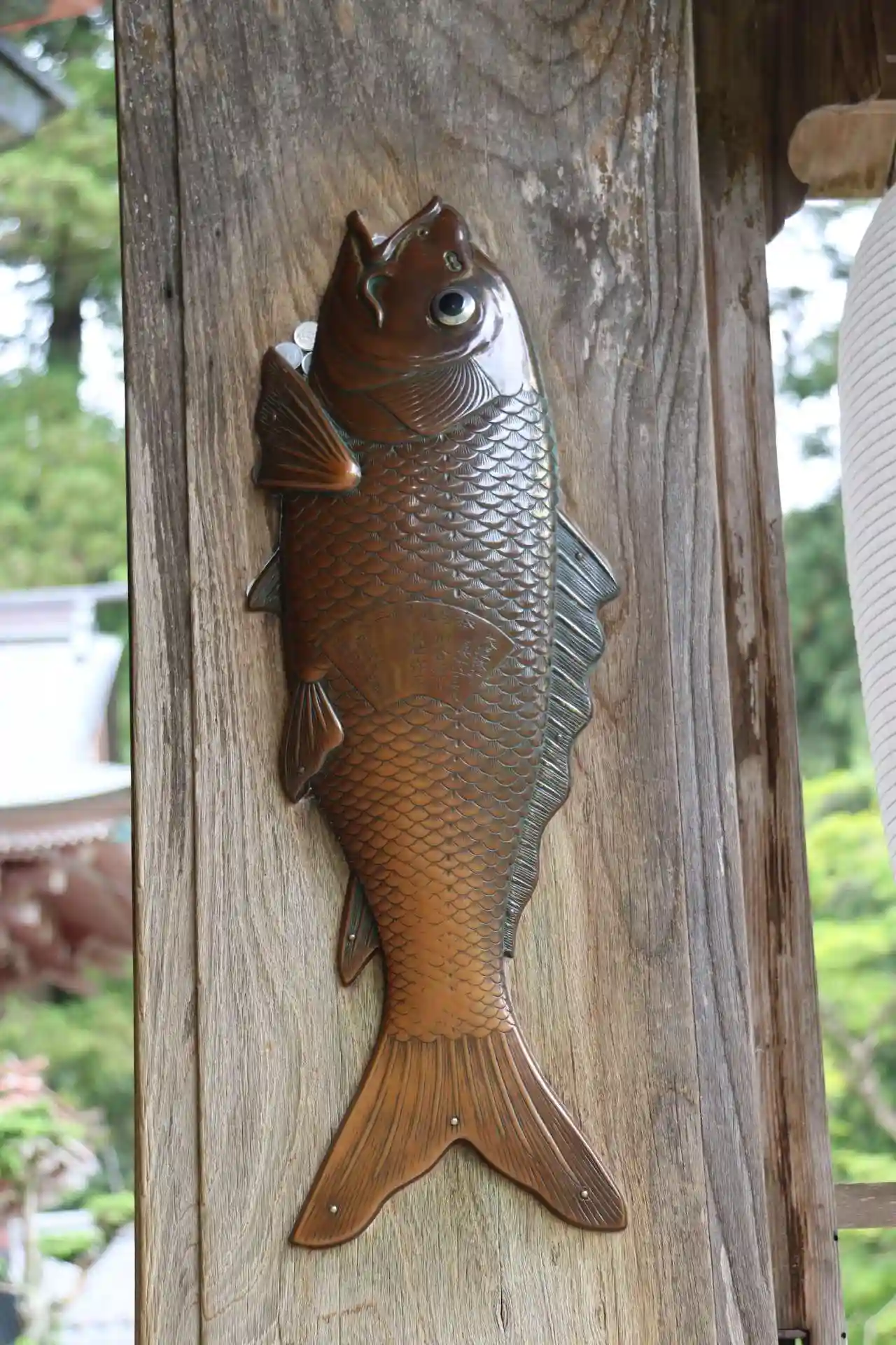 精進落としの鯉です。口に賽銭しましたよ😆