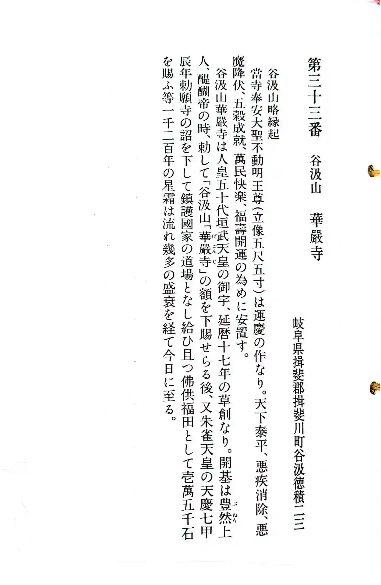 東海三十六不動尊霊場 第33番札所 華厳寺