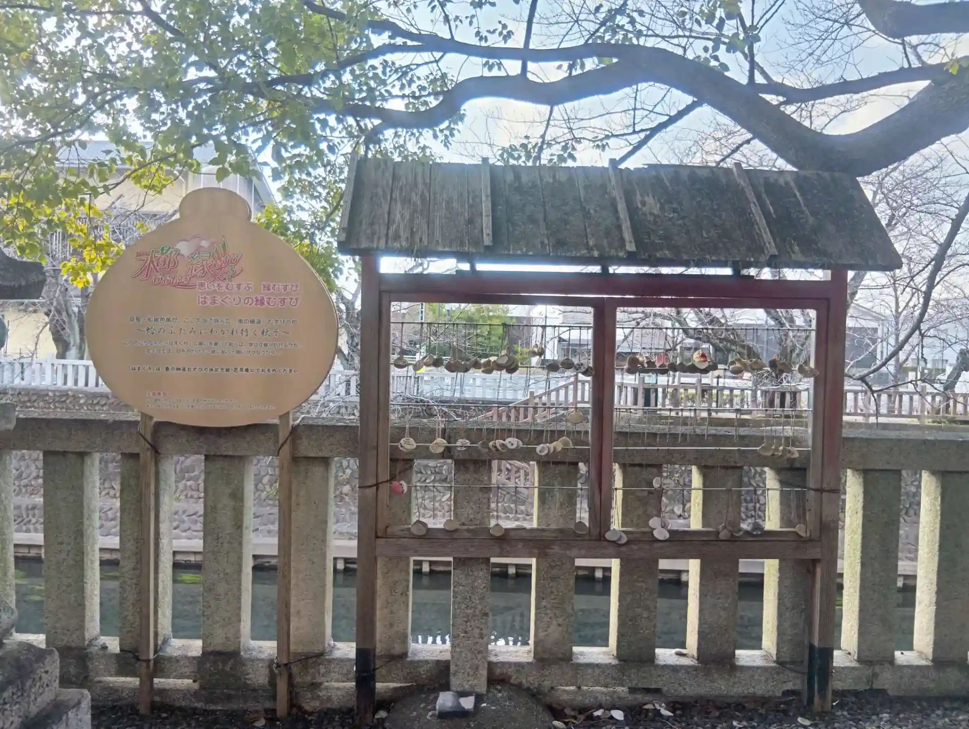 1840年に創建された水門川沿いの旧船町港跡に位置する、かつて水運の拠点として栄えた守護神です。松尾芭蕉が「奥の細道」の旅を終え伊勢へ船出した地に隣接し、境内には県指定史跡の「住吉燈台」があります。現在は「むすびの聖地」として、「奥の細道むすびの記念館」にて購入した蛤の絵馬で縁結びの御利益を求める人々が訪れる、新たな「むすびの聖地」です。