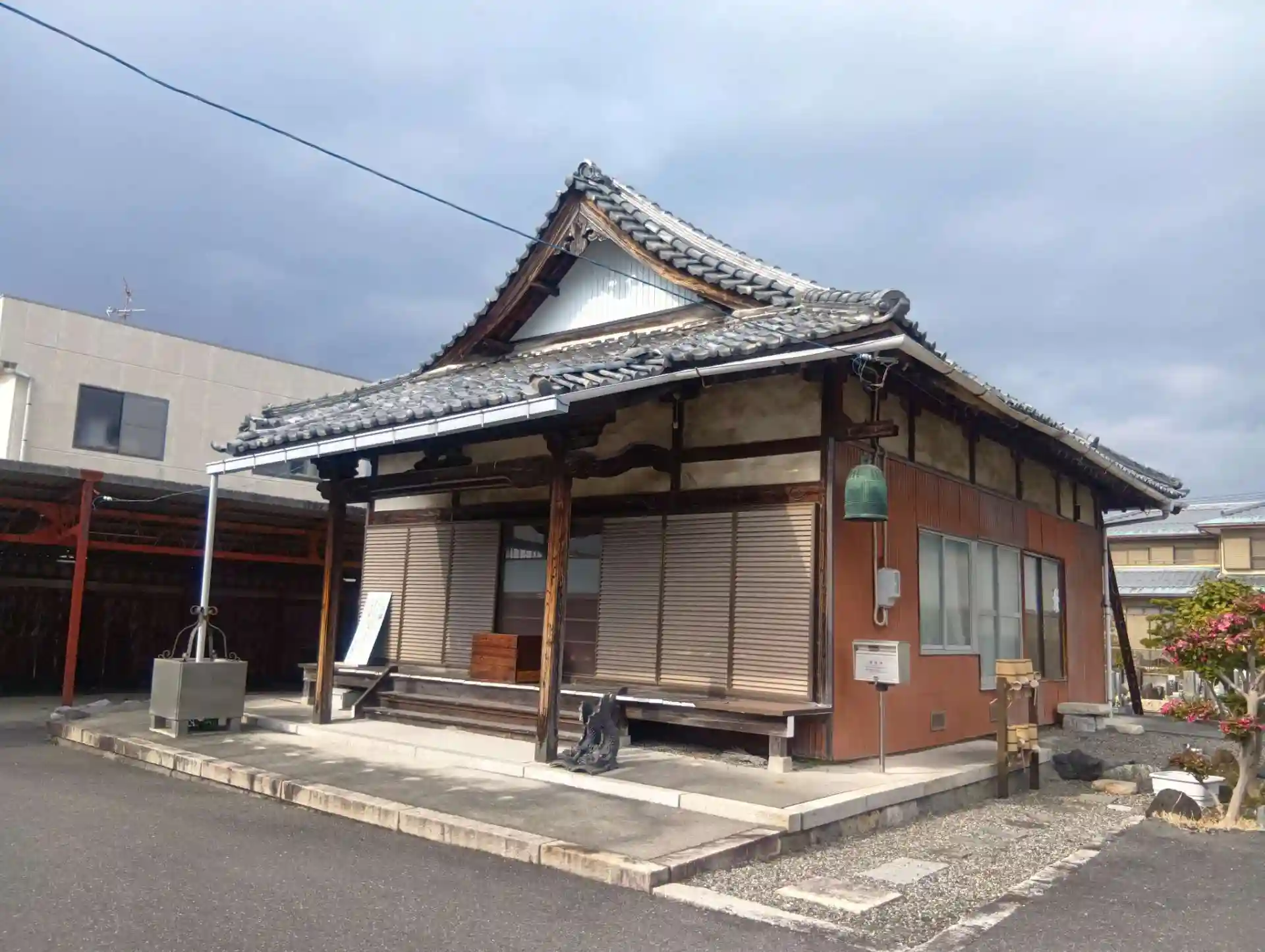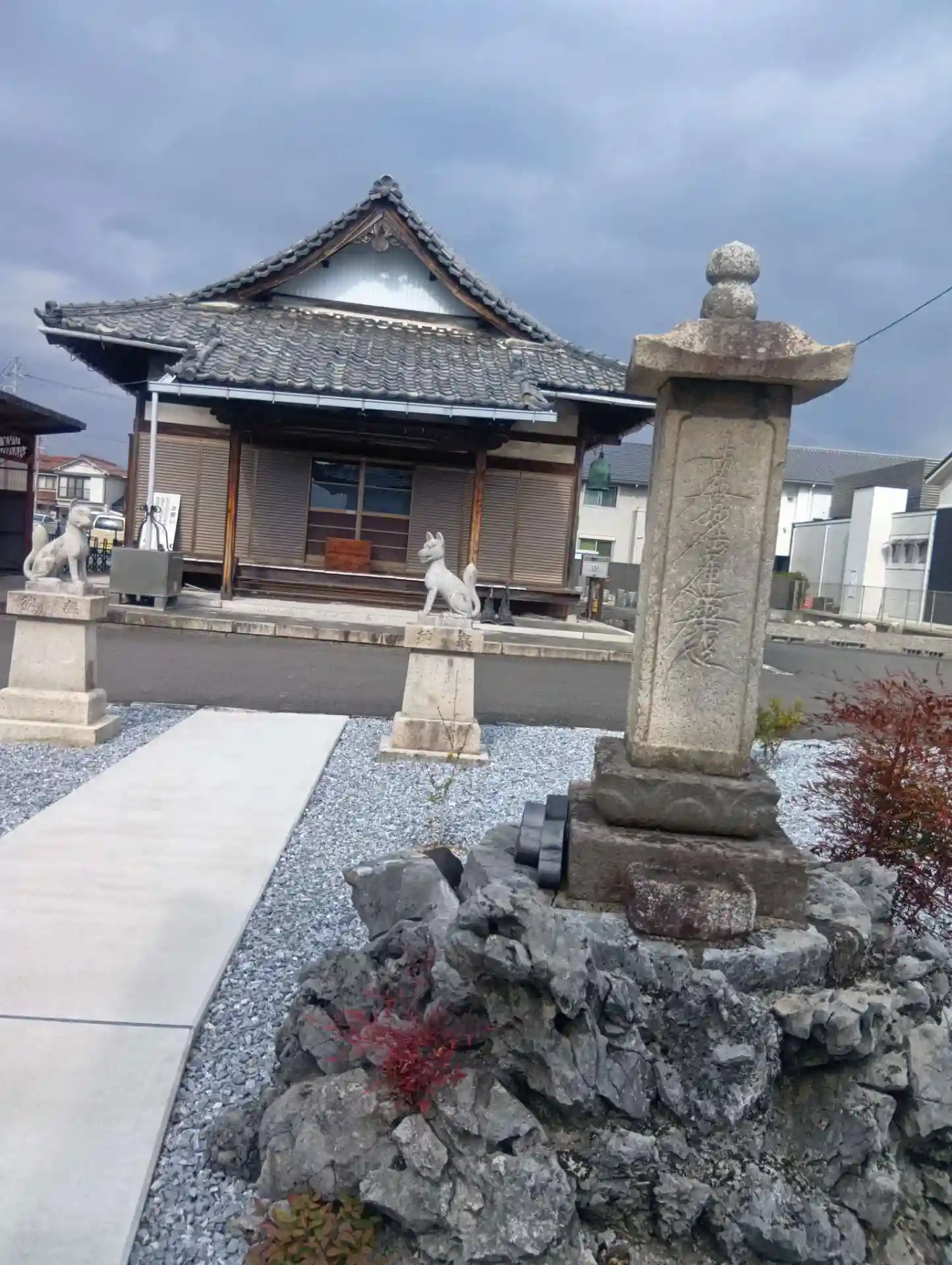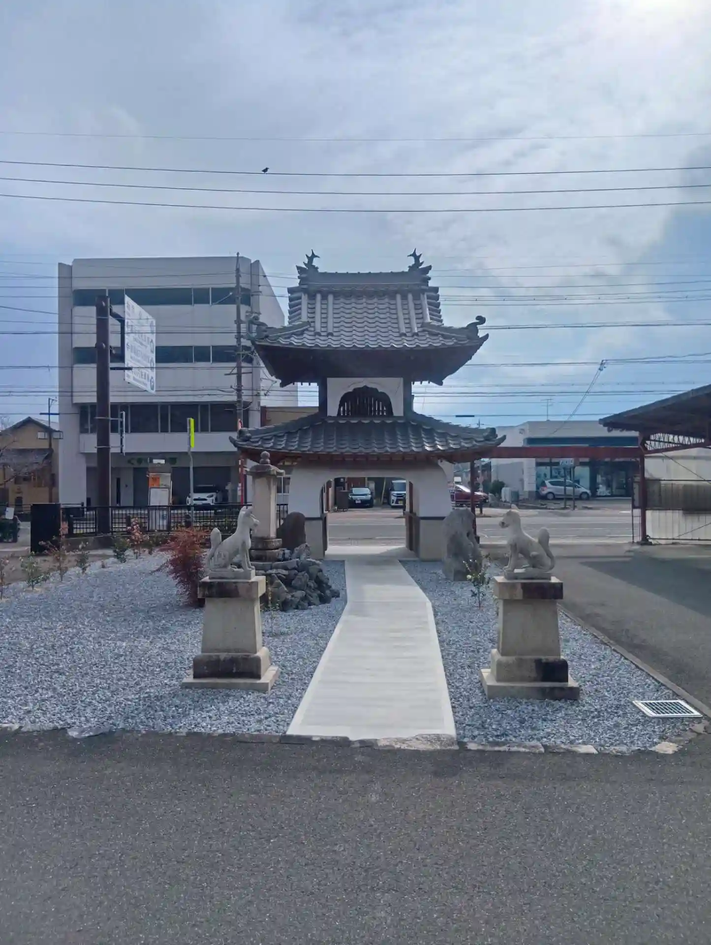 岐阜県大垣市船町、「奥の細道むすびの地記念館」より南西へ徒歩5分ほどにある、「常隆寺」(じょうりゅうじ)へ初参拝させていただきました。近隣の駐車場より、お寺の楼門らしきものが見えたので伺いました。楼門の前にバス停「奥の細道むすび記念館前」がありました。日蓮宗のお寺です。立派で白く美しい「龍宮門」(楼門)がありました。珍しい形状の門として知られているそうです。上手く写真を撮ることはできませんでしたが、とても興味深い龍宮門で、しばらく見入ってしまいました。どなたもいらっしゃらないお寺のようです。キツネさんの片耳が折れており、悲しく思いました。駐車場あります。