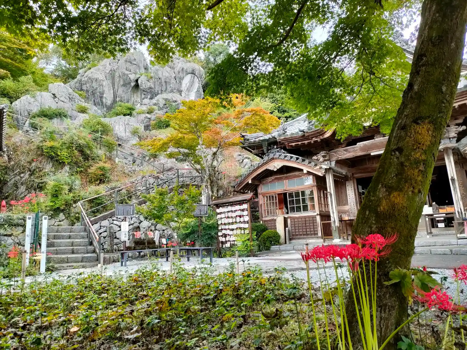 金生山の上にあり、石灰岩の巨岩と景色がとても良い。内陣も圧倒される。
