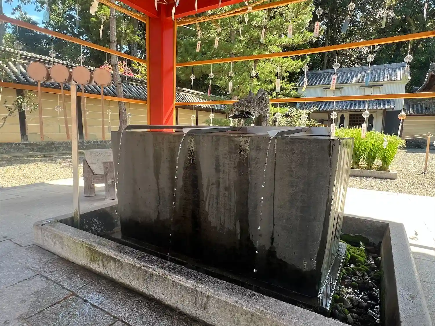 いざ、境内へ参ると、可憐な風鈴の数々、残暑を吹き飛ばしてもらえる様に、笑みこぼれました。歩を進めると、心地よい風に包まれ、素敵な歓迎を頂き、汗もかいていたのもあるのでしょうが、涼感じながらも背中は温かく、とても気持ちもよく、心地よい風と空気に包まれ最高に気持ちもよく、心地よい、ひと時でした。