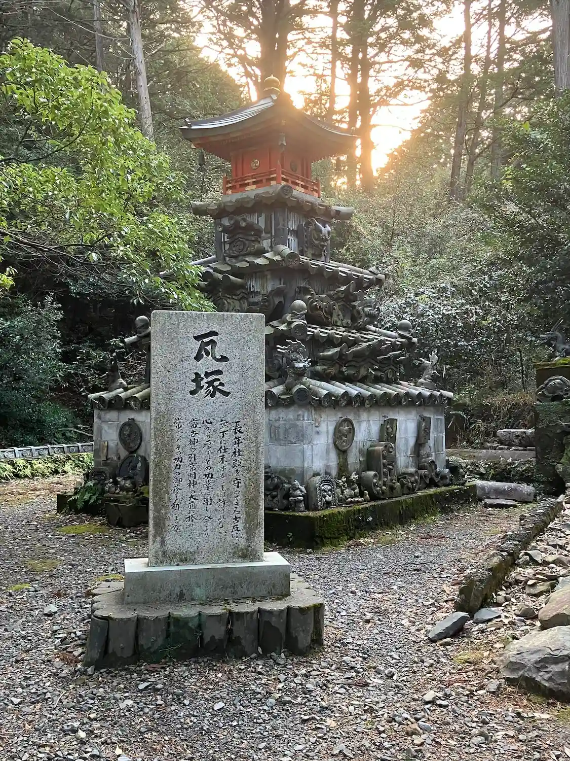 山道がある方に進むと、多くの神様が祀られており、ずっと進むと長い鳥居があります。