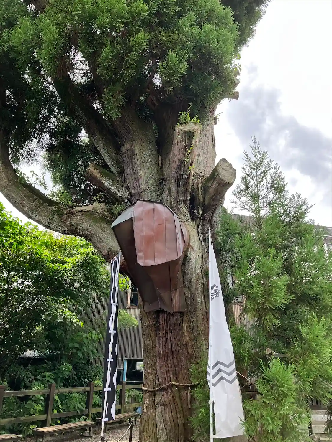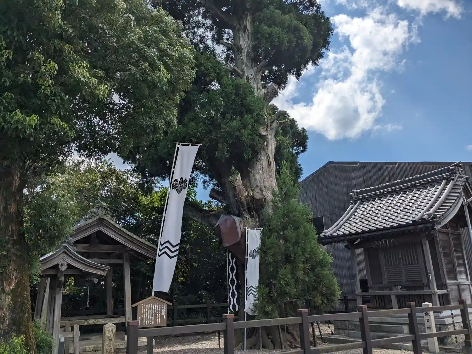 社殿前の微妙な位置にご神木の大杉があるのですが、神社のほうが後からなのだそうです。