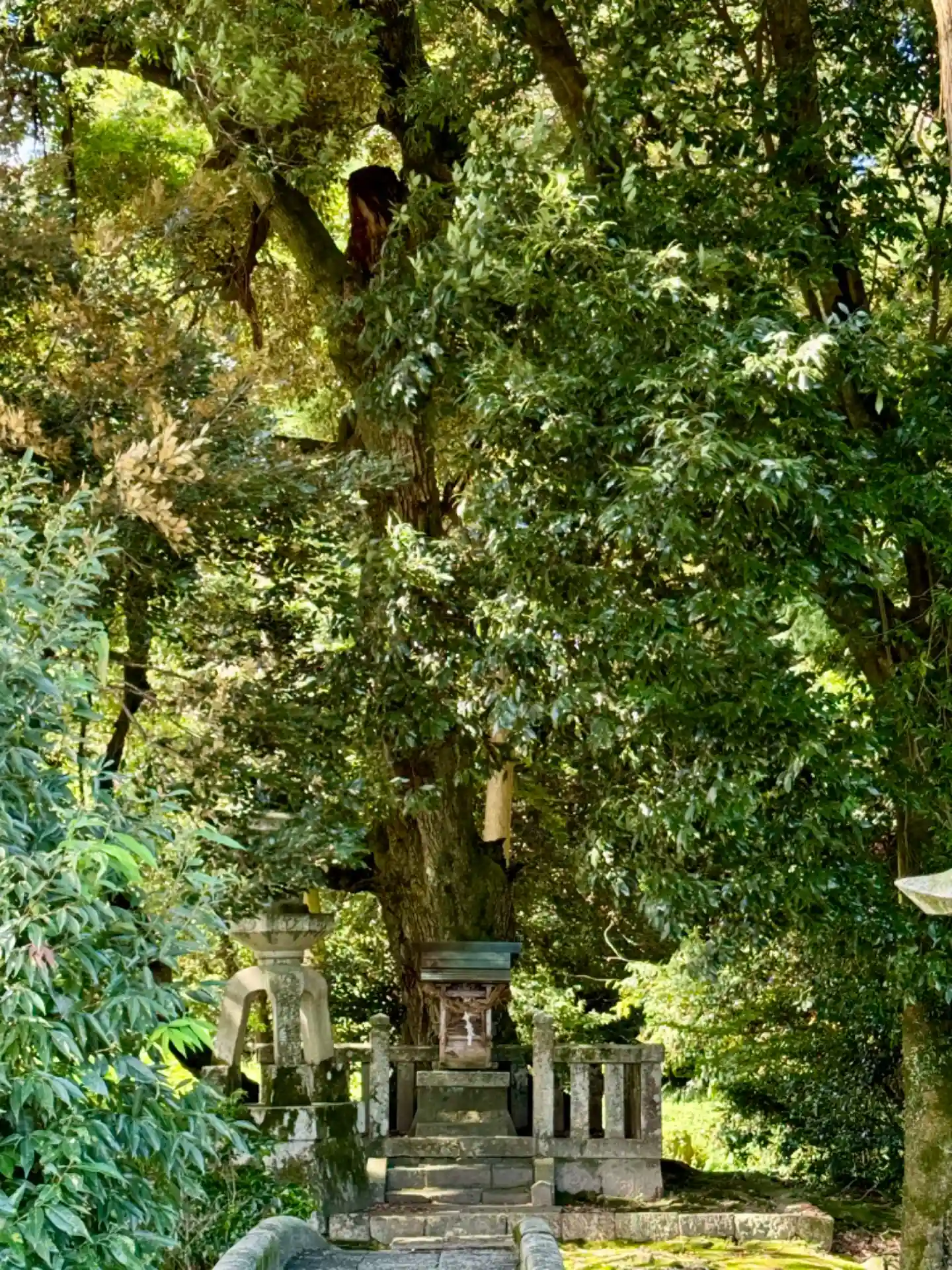 境内入口左手にも石橋があり、大きな木を背に祠がありました。弁天さんのような🤔?