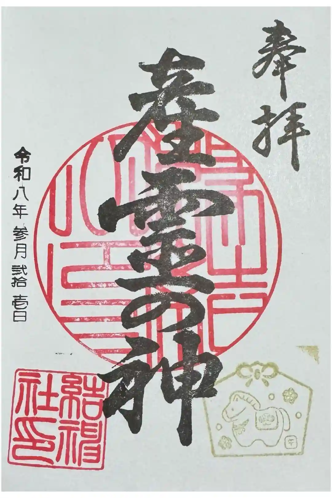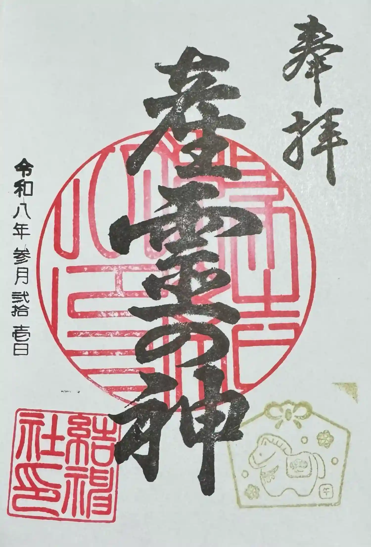 神社の左奥の工場の事務所で直書きしていただきました。但しオールはんこ。