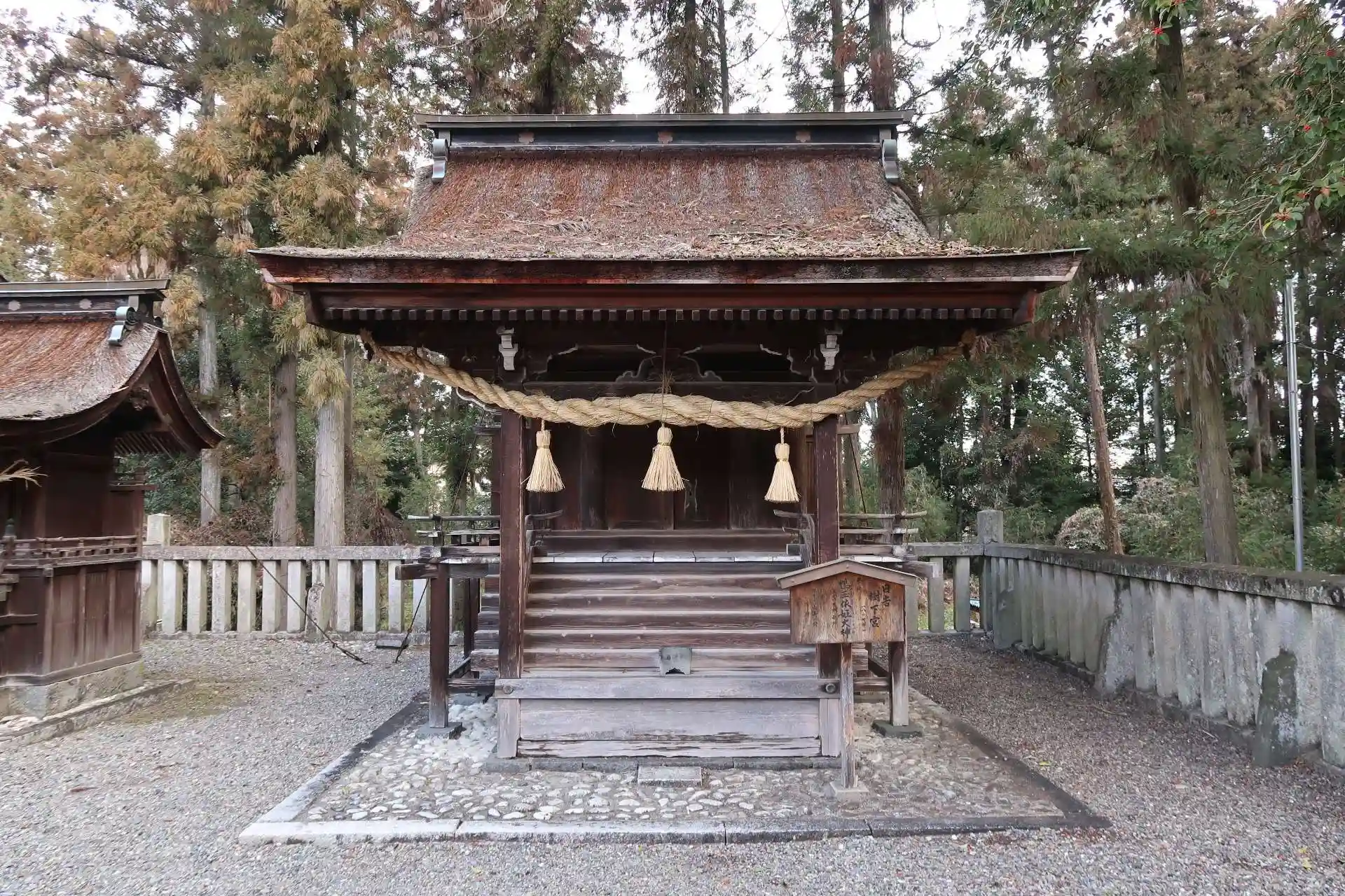 主祭神は、大山咋神(オオヤマクイノカミ)、大貴己神(オオナムチノカミ)。