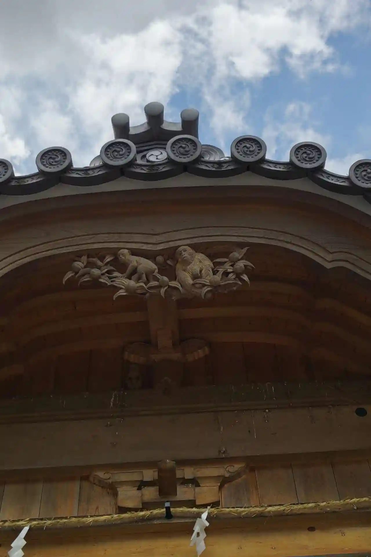 頭上には見事なお猿さんの彫刻。