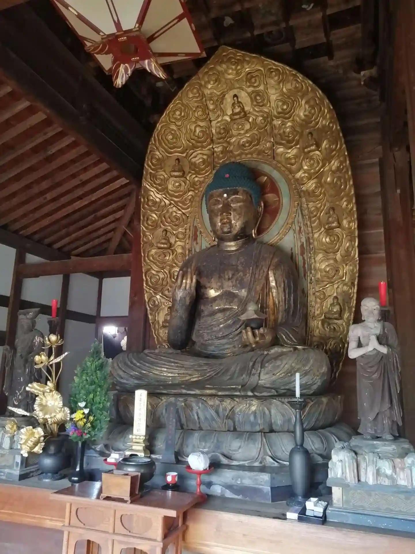 厨子の右側に如来坐像が置かれていますが、両手首から先が失くなっているため仏名はわかりませんが、この寺の創建以前の平安時代作との事であり、こちらも10年程前に市指定有形文化財になりました。(光背と台座は近代の後補)
