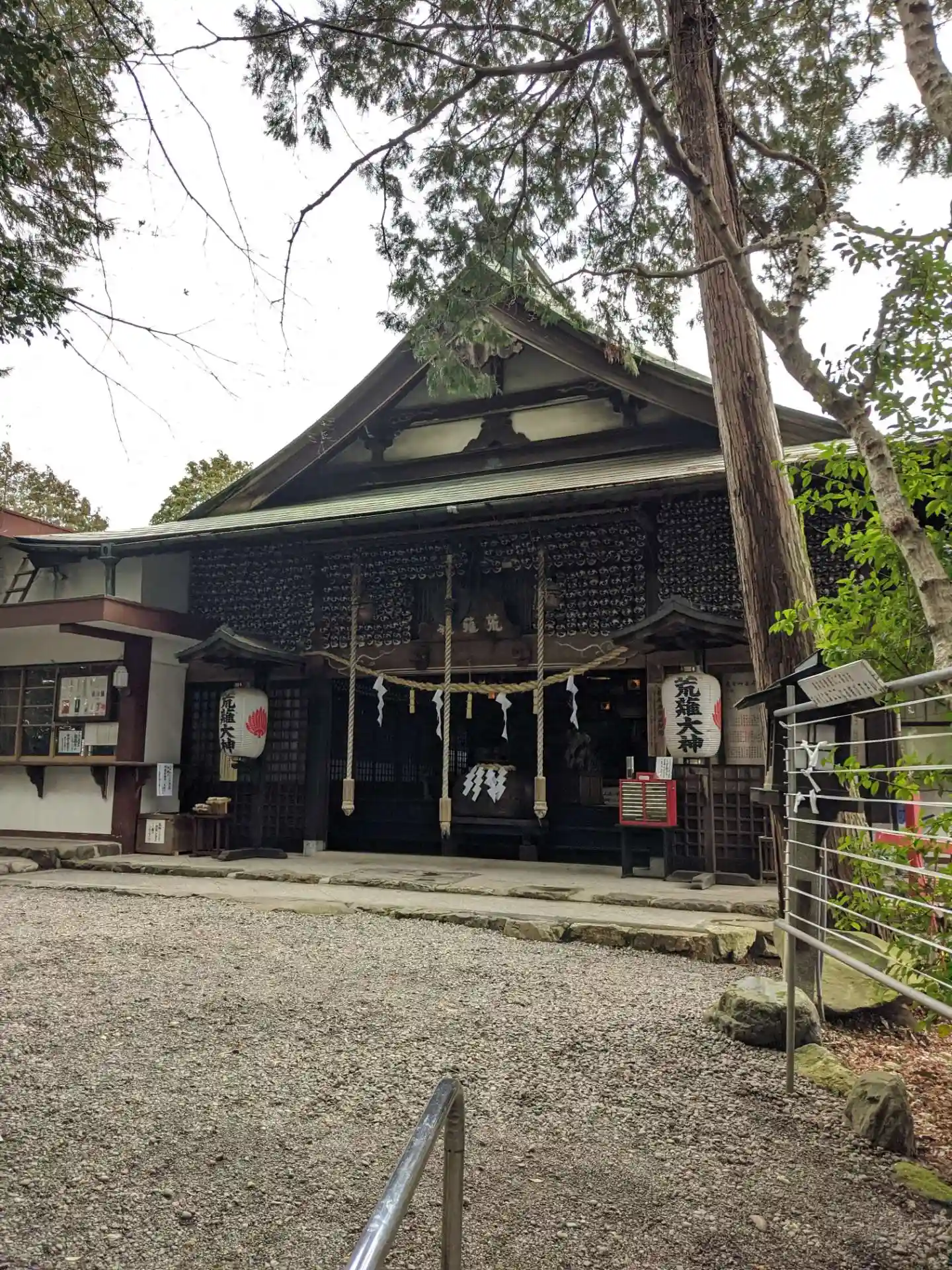 本殿です。壁には天狗のお面が無数に並んでいました。
