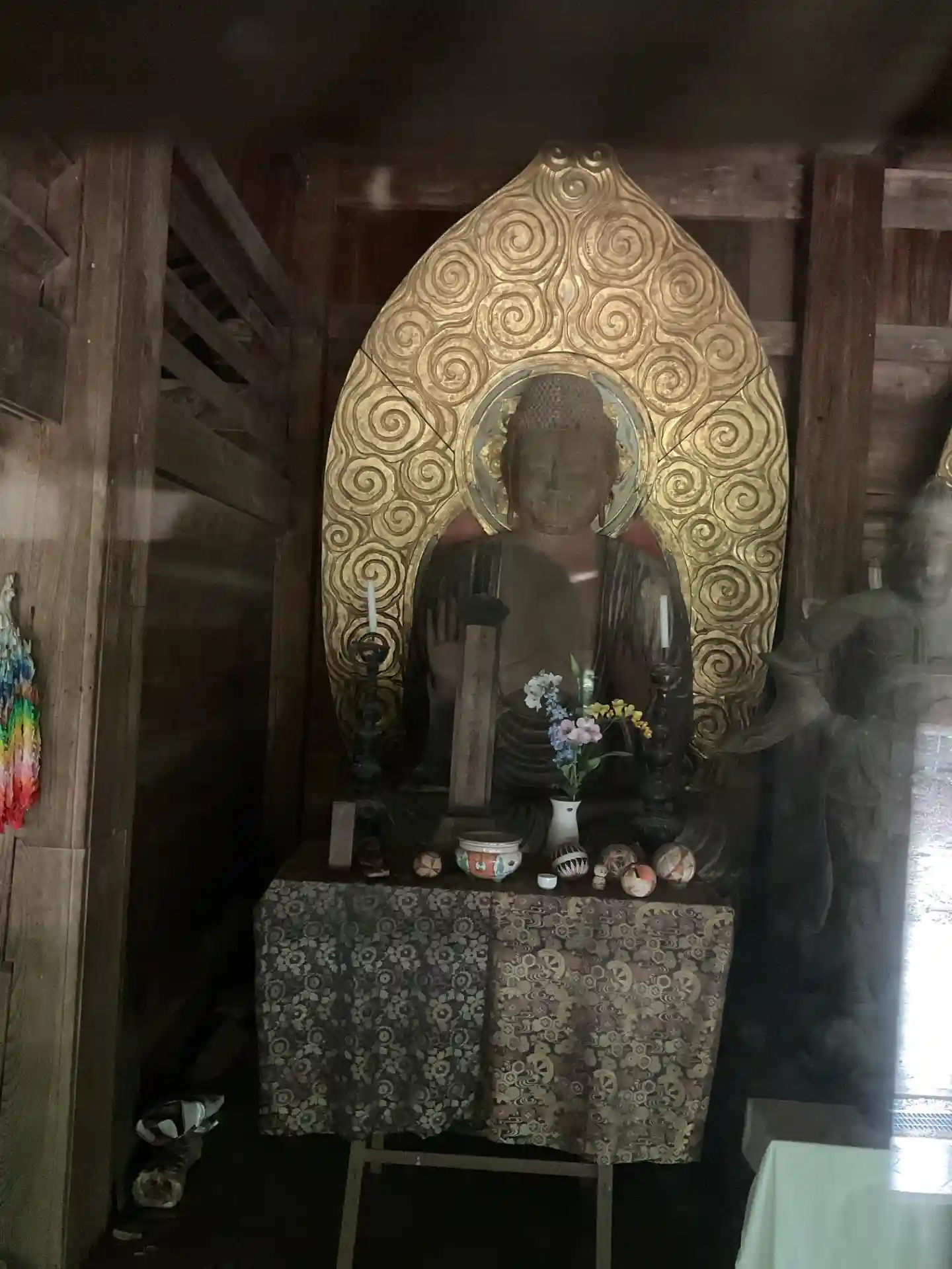 本堂の扉は閉まっておりましたが、格子戸にガラスが嵌めてあるタイプなので堂内の仏像7躯は辛うじて観れます。7躯が並んでいるのはなかなか壮観です。内陣から拝観出来たら素晴らしかったと思います。