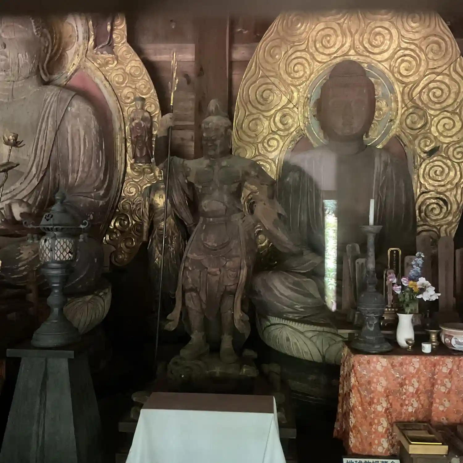 後方の立像は日光菩薩