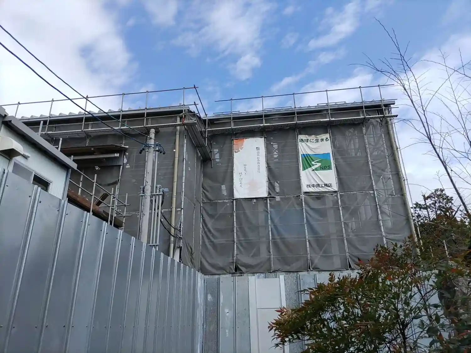 本堂全体を被う工事現場