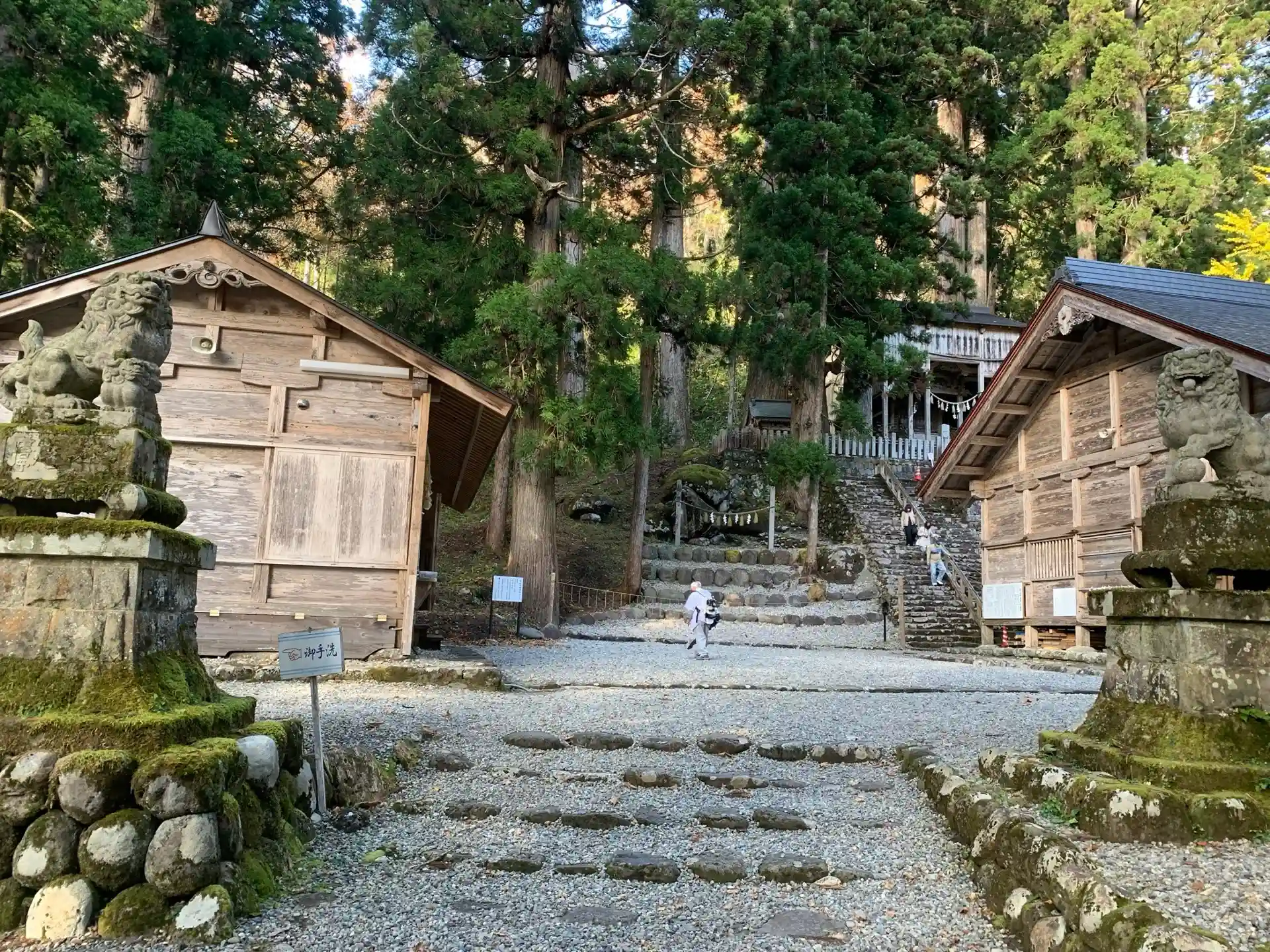 長滝白山神社から白山頂上までの中間地点として栄え、境内は樹齢200〜1000年を数える杉の大木に囲まれて厳粛な雰囲気に包まれています。