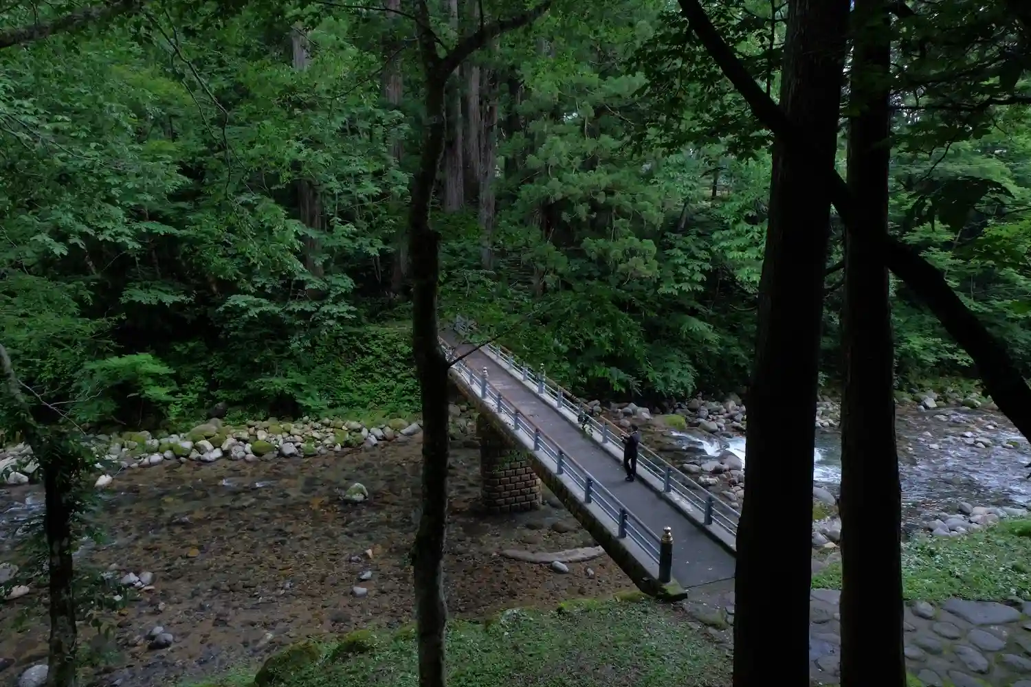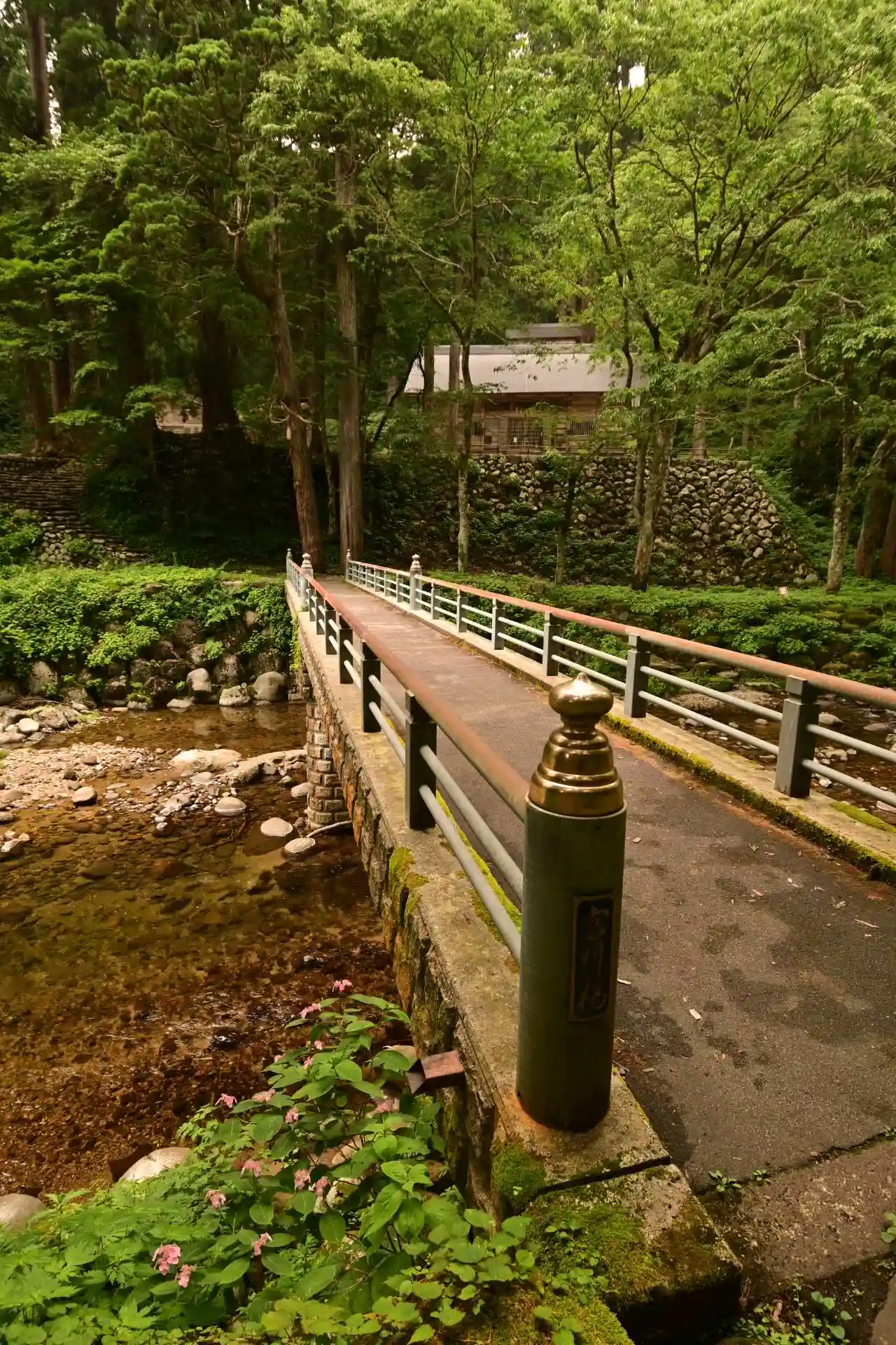 川が参道の中を流れています。