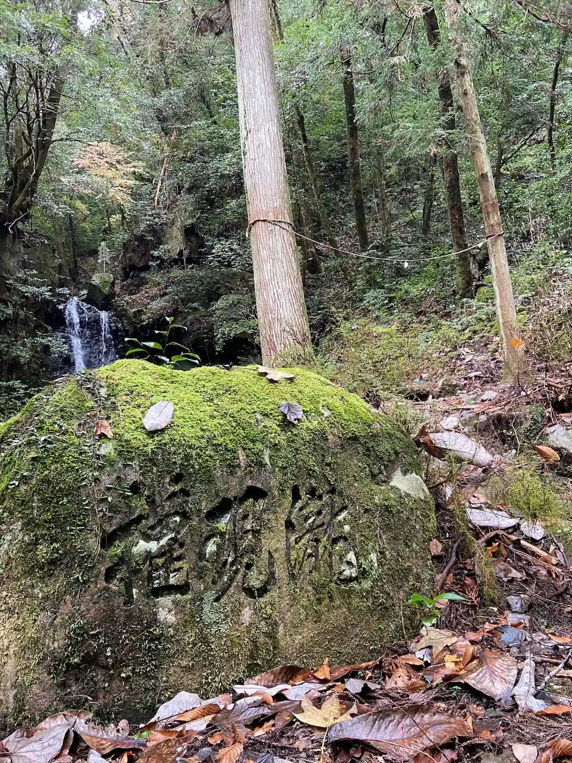 「権現瀧」の石碑、苔むしててきれい