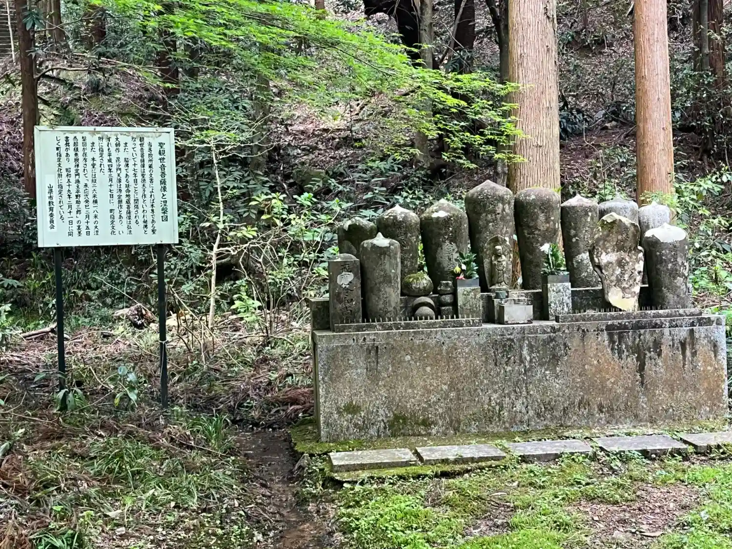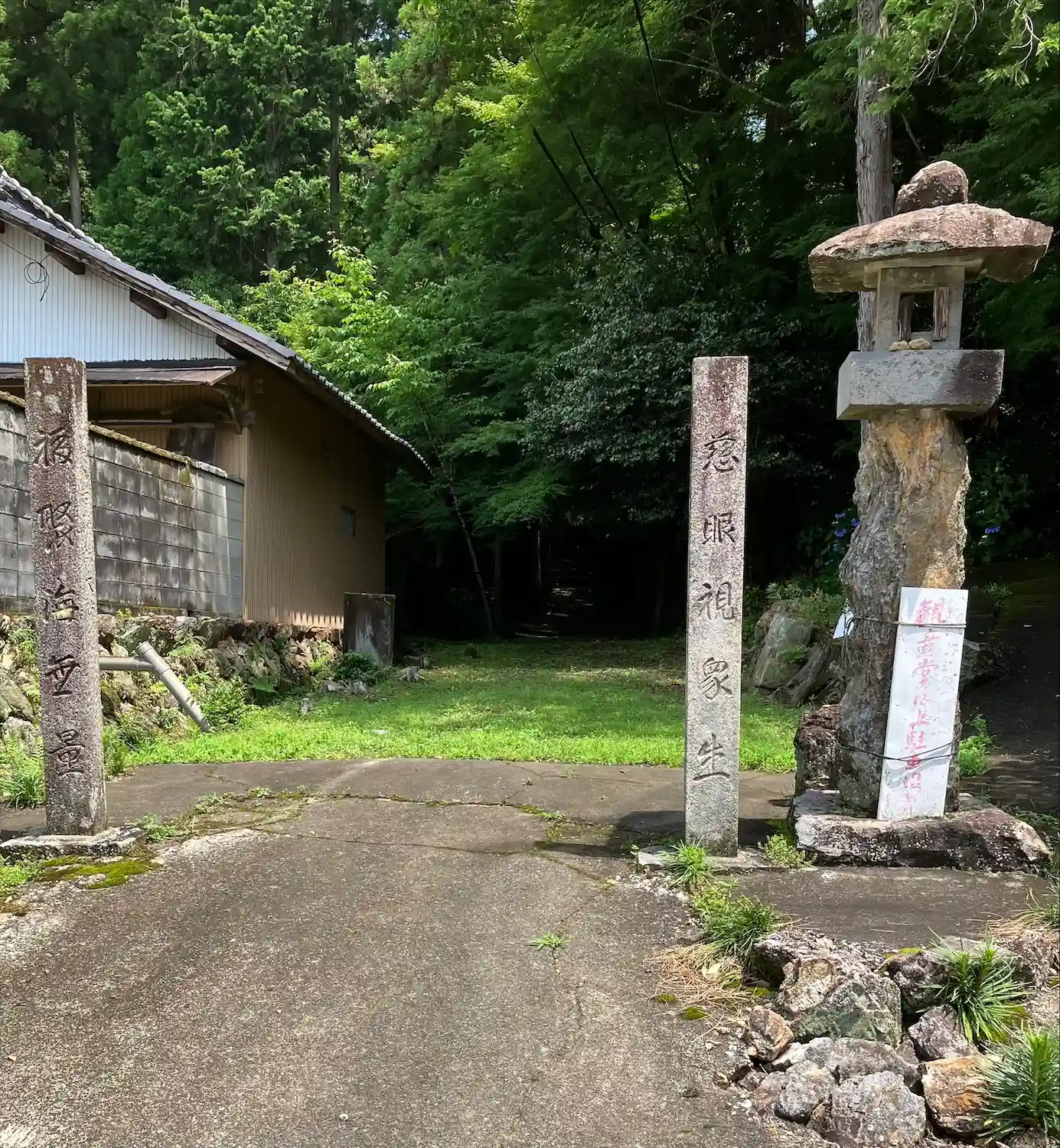 石灯籠の右側が駐車場へ向かう道。