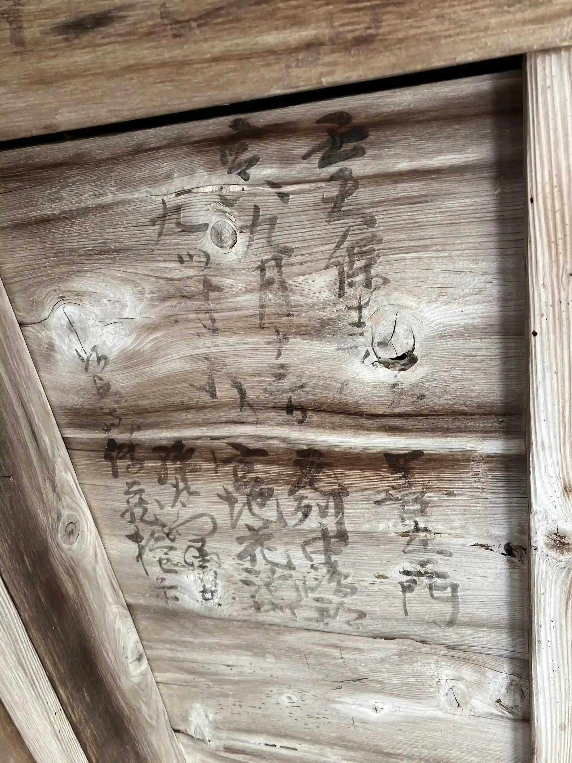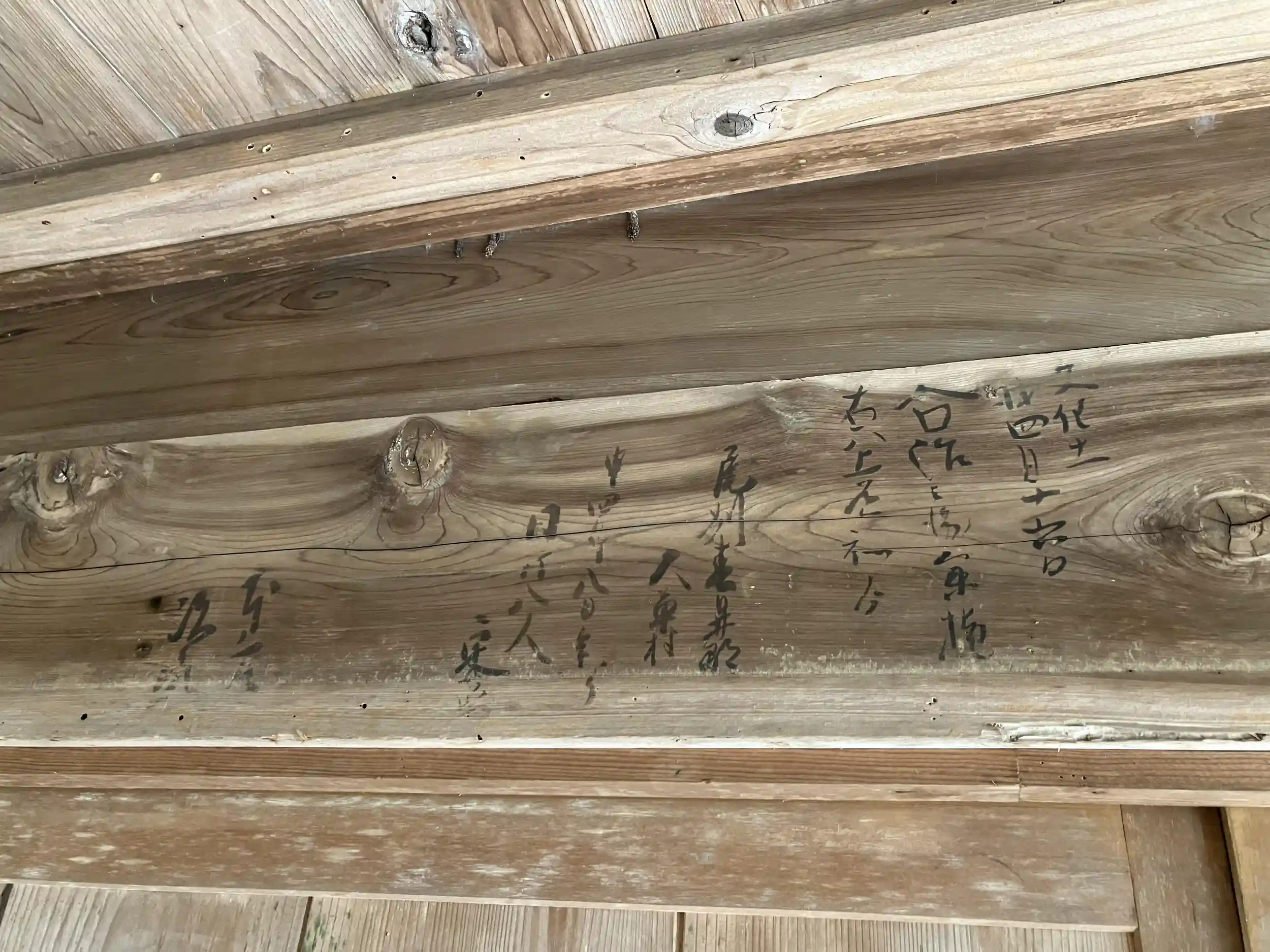 籠堂は中には入れませんが、軒裏を見上げると、江戸時代当時のものと思われる何かの書き込みがあり、歴史を感じます。