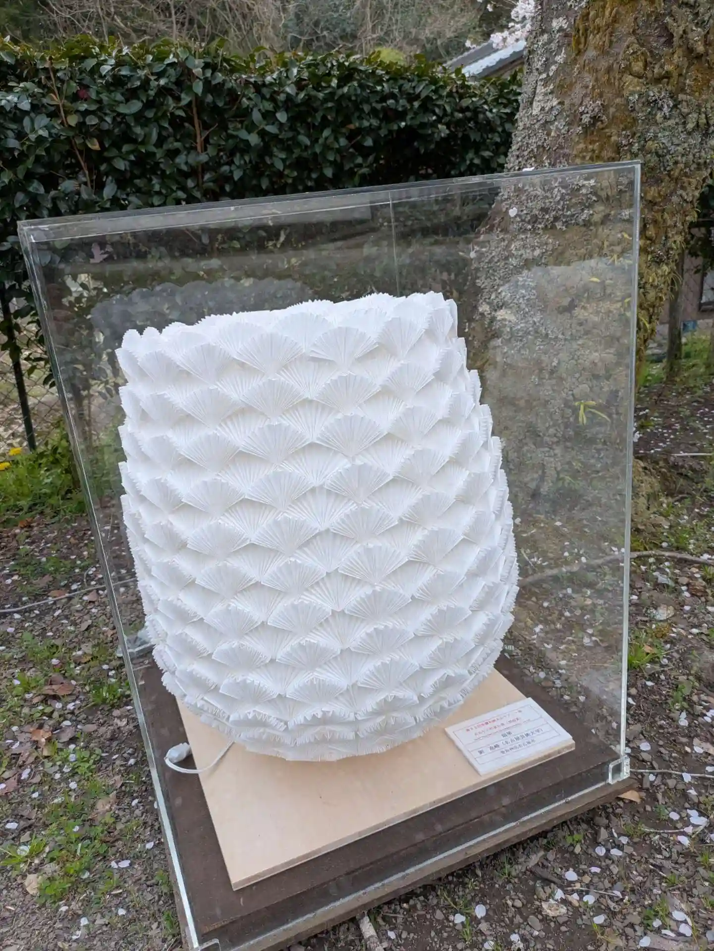 そして お寺の駐車場に到着すると 大きな桜の木が・・そして境内には 美濃和紙 あかりアートの作品が20点ぐらい 夜にはライトアップされる様子で 幻想的でしょうね